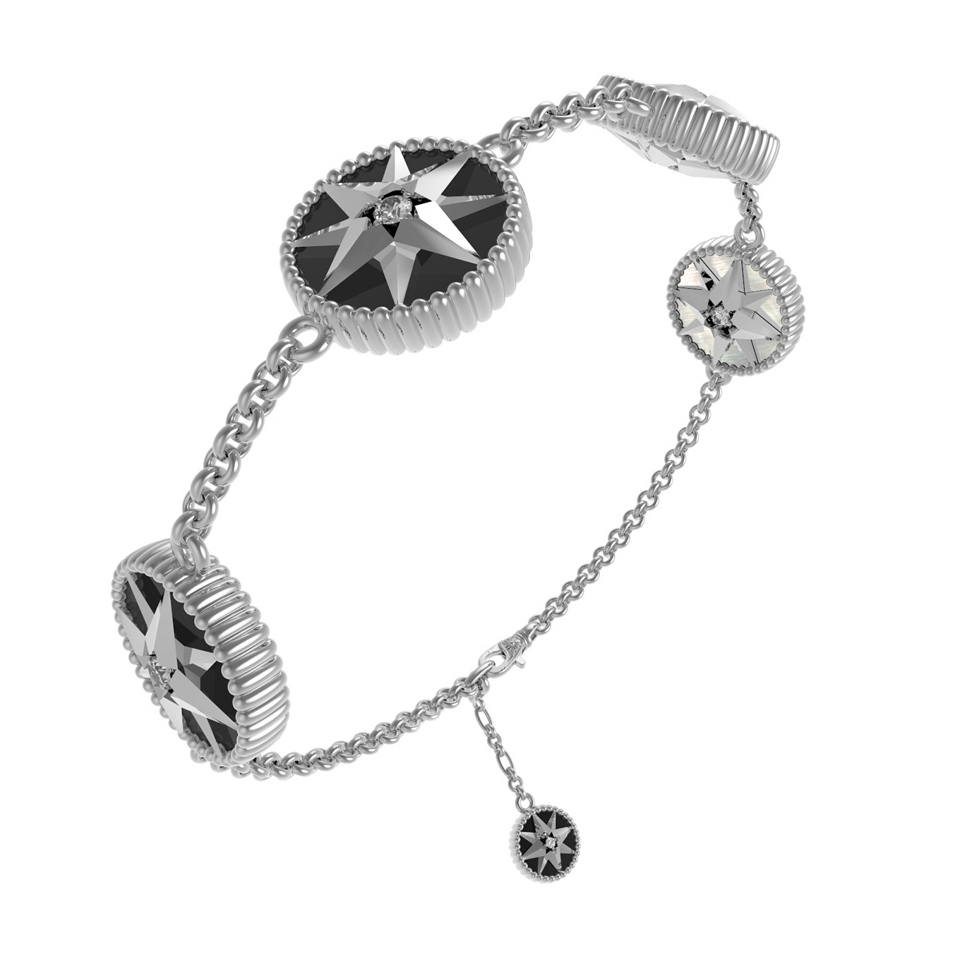 Браслет из белого золота c фианитом, ониксом и перламутром