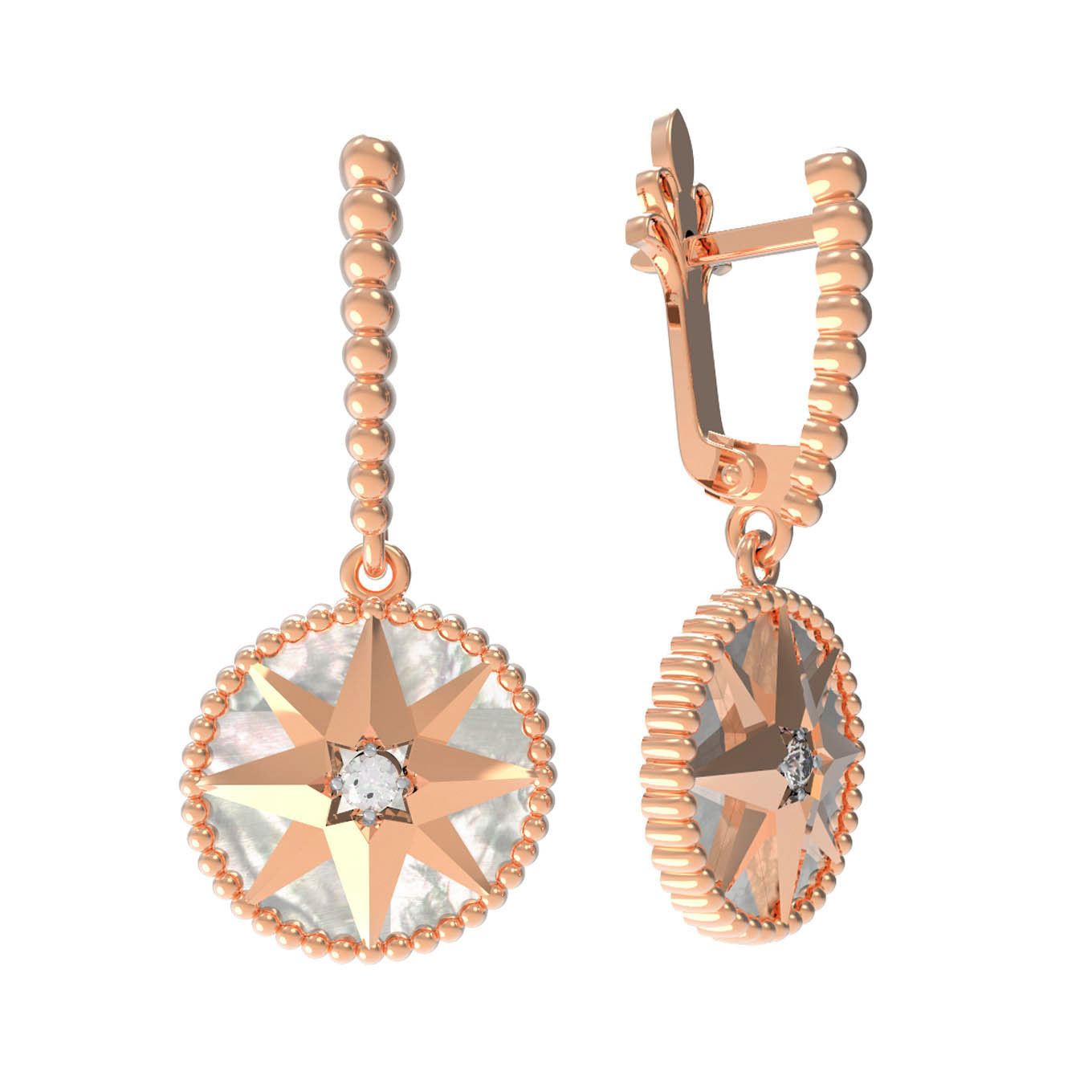 Серьги из золота c фианитом и перламутром