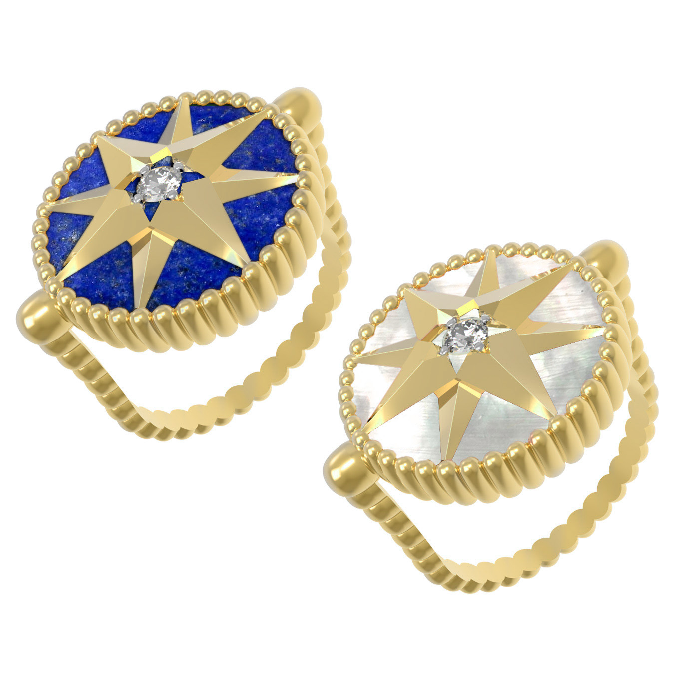 Кольцо из лимонного золота c фианитом, лазуритом и перламутром