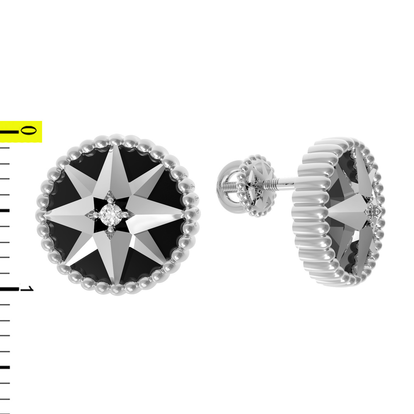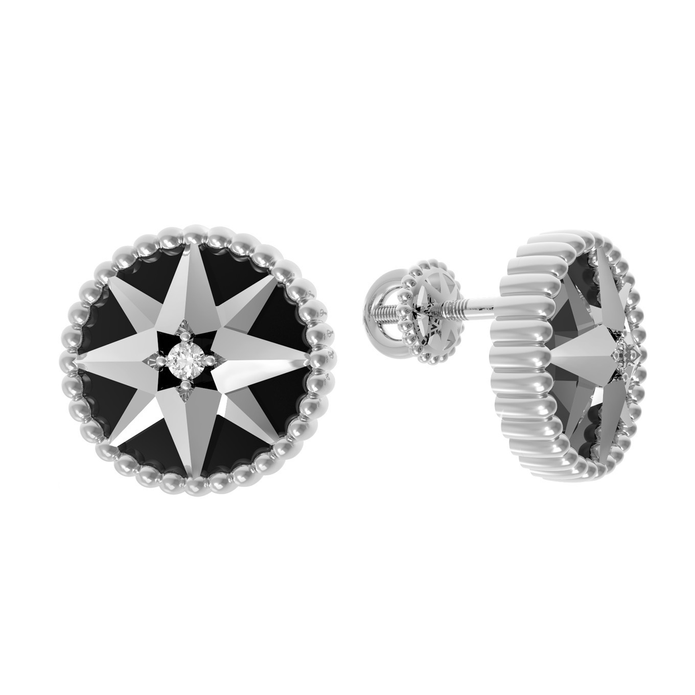 Серьги из белого золота c фианитом и ониксом
