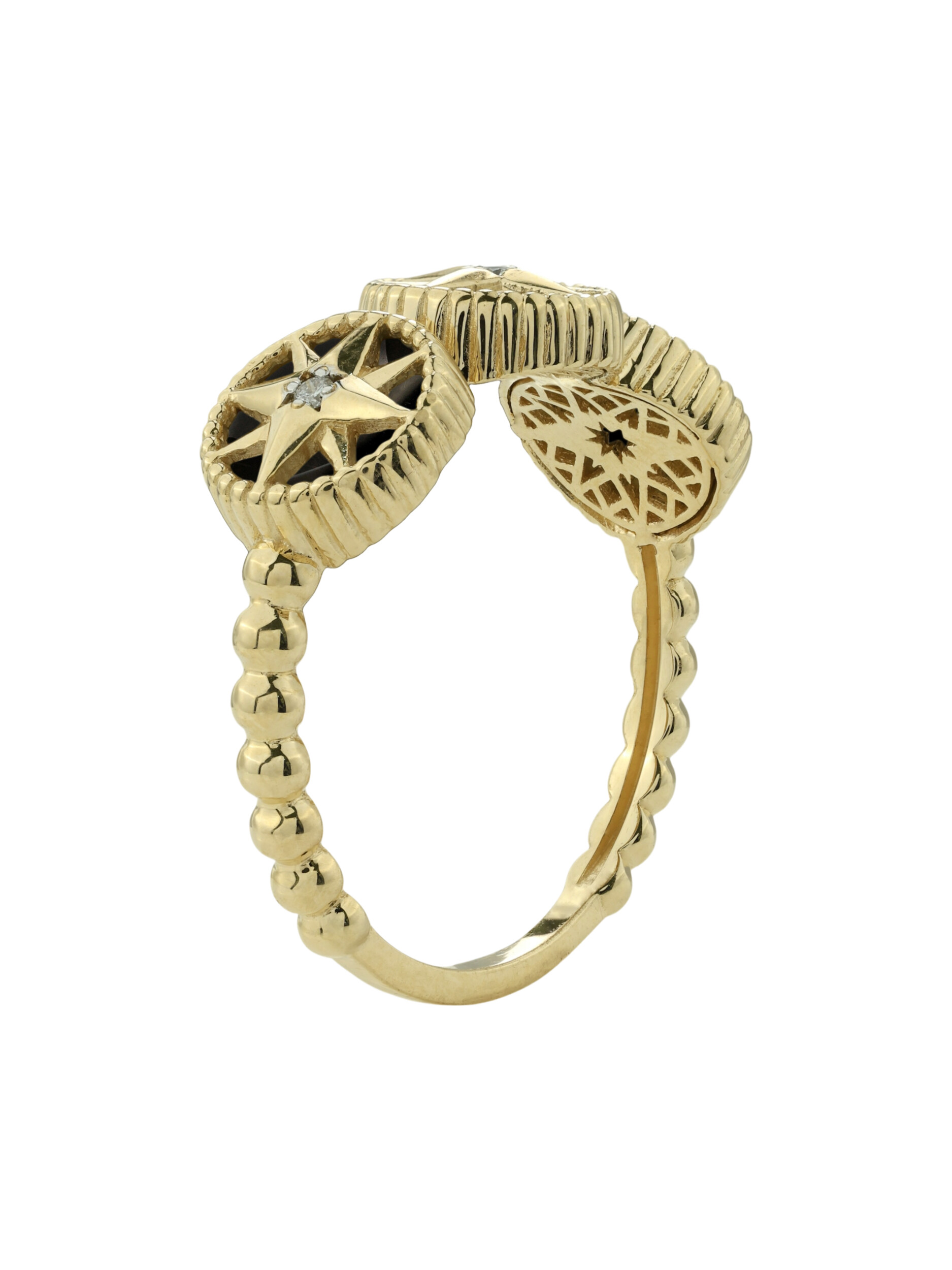 Кольцо из лимонного золота c бриллиантами и ониксом