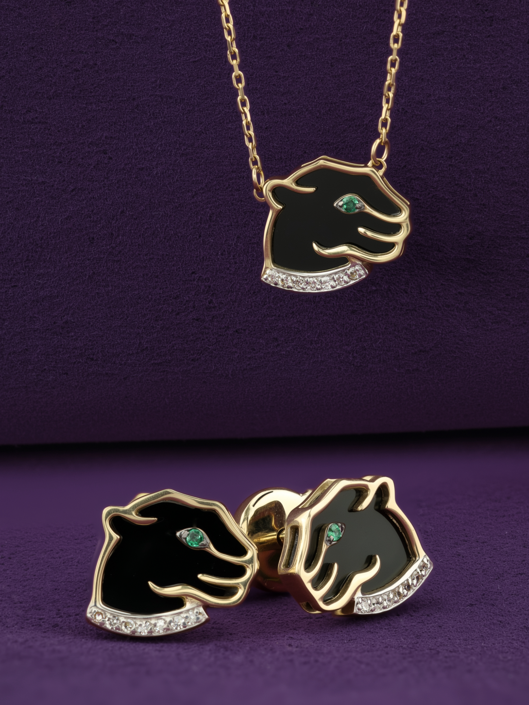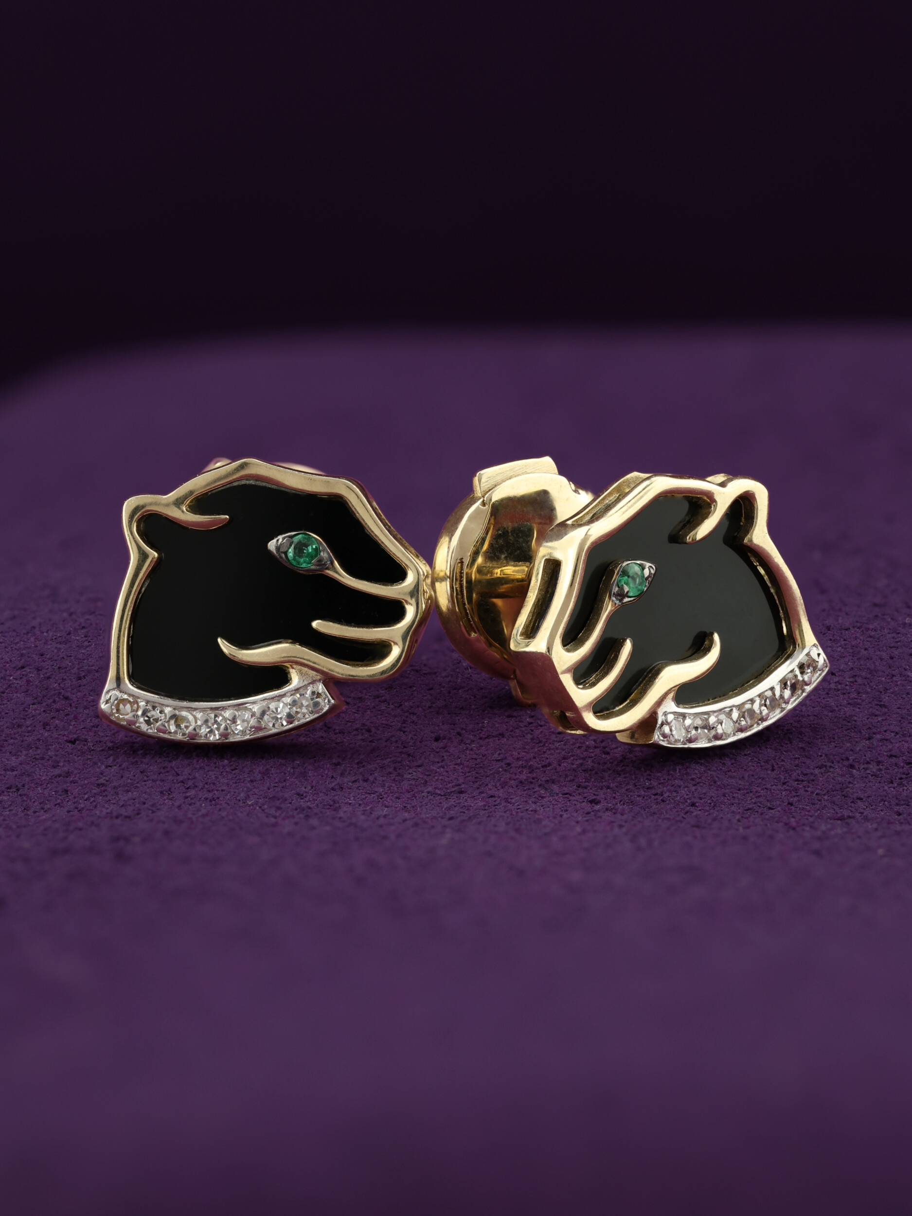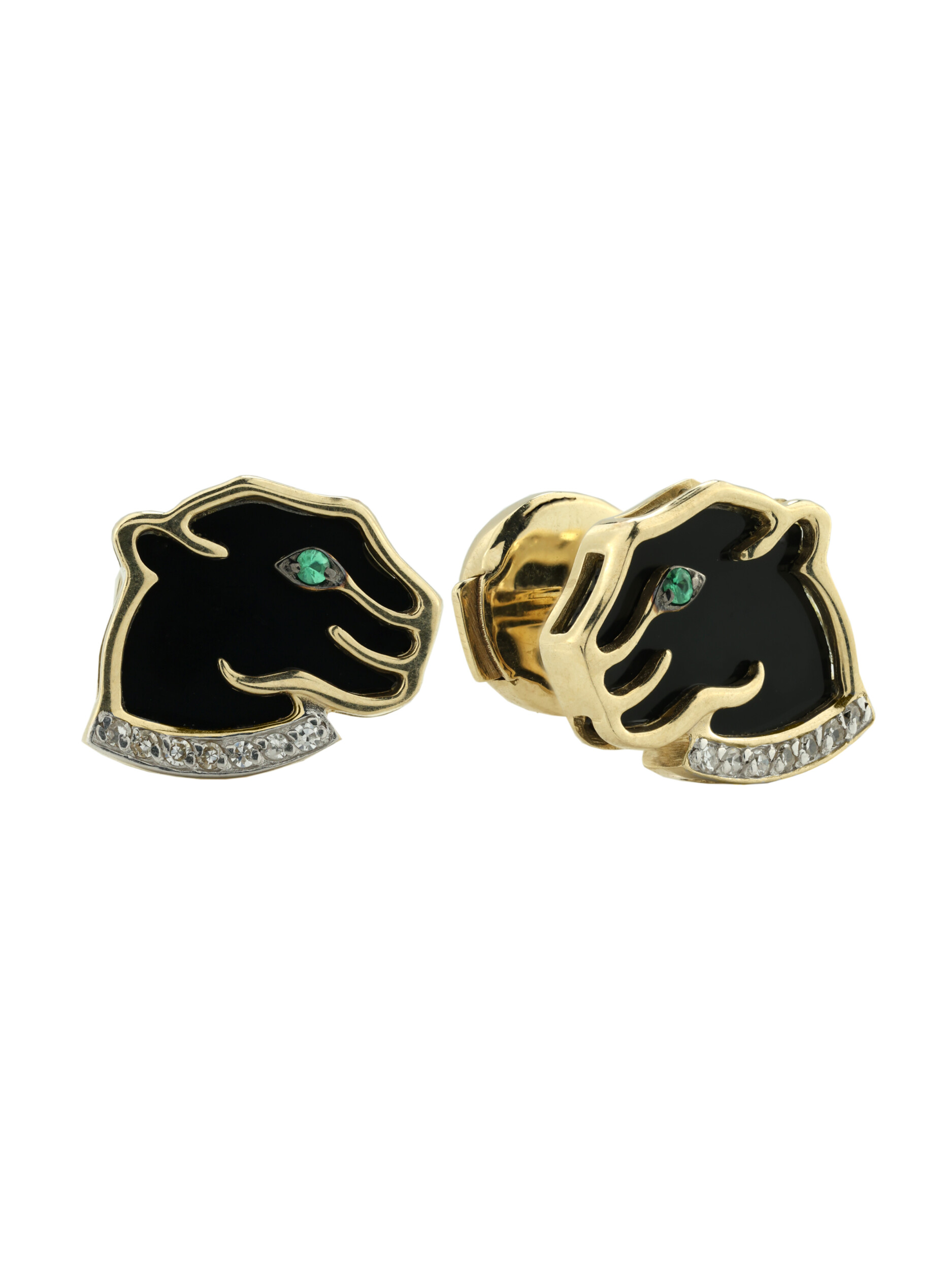 Серьги из лимонного золота c бриллиантами, изумрудом и ониксом