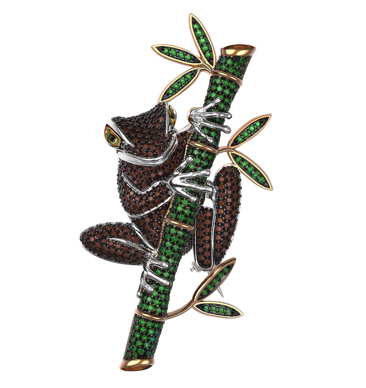 Эта оригинальная брошь из красного золота станет выразительным акцентом вашего образа, подчеркивая вкус и внимание к деталям. Изделие из коллекции De Luxe — Лягушки представляет собой миниатюрное произведение ювелирного искусства, вдохновленное природными мотивами. Дизайн броши выполнен в виде экзотической лягушки, грациозно расположившейся на бамбуковой ветке.