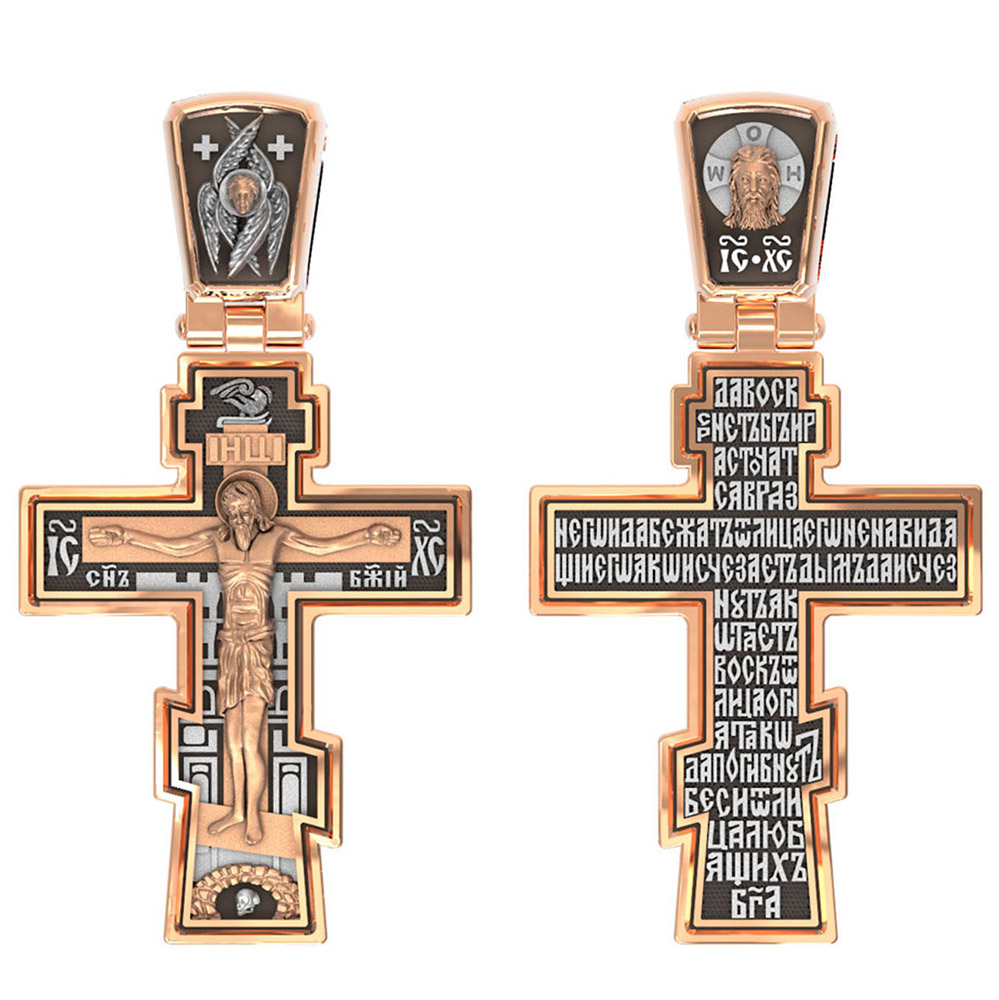 Восьмиконечный нательный крест с Распятием Иисуса Христа на горе Голгофе. Форма этого кресты является одной из самых распространенных на Руси и более всего соответствует тому Кресту, на котором был распят Христос.