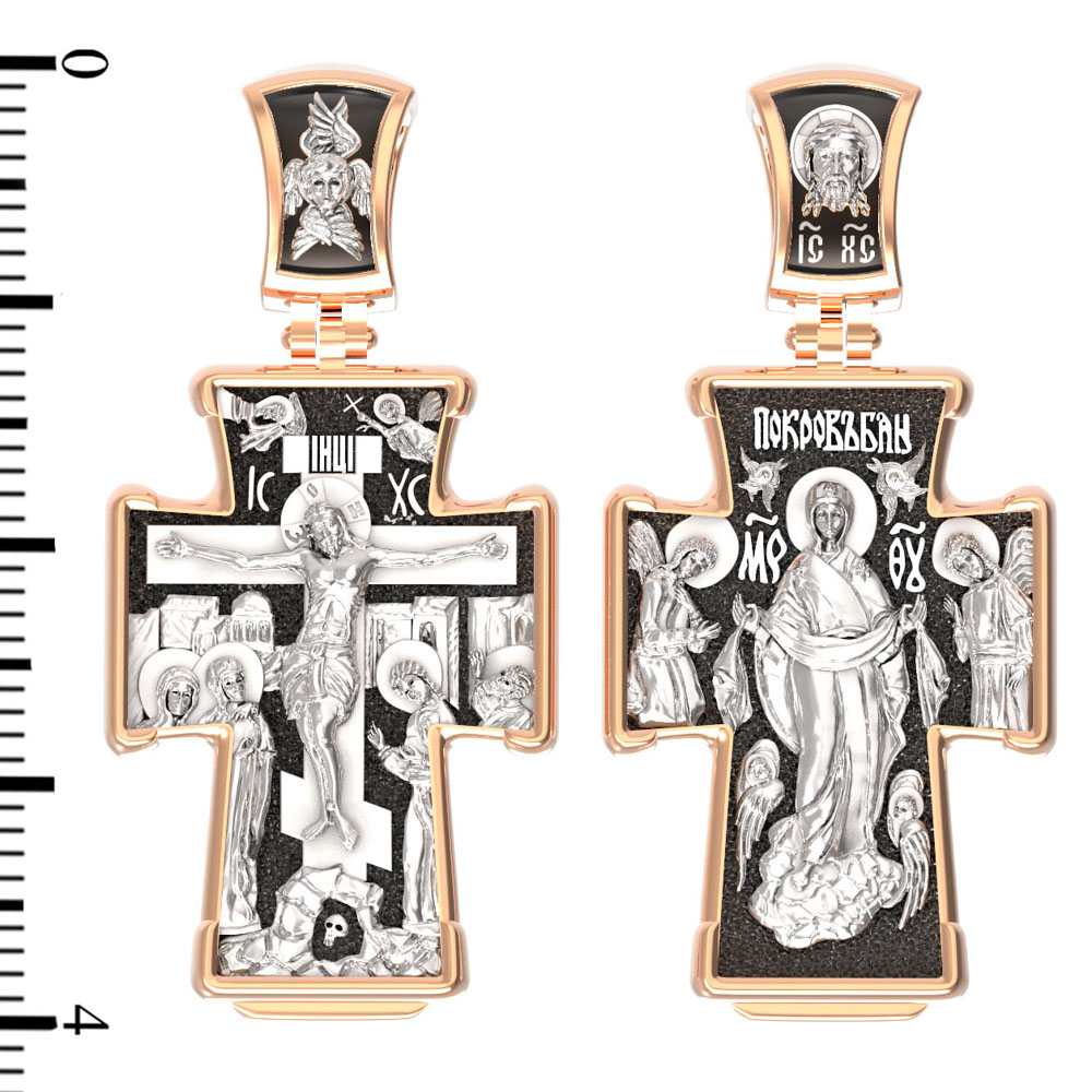 На обороте креста изображена икона Покрова Пресвятой Богородицы. Праздник Покрова Божией Матери является воспоминанием чуда, которое произошло во Влахнернской церкви 1 (14) октября 910 года: Пресвятая Богородица явилась верующим над алтарем храма и распростерла над ними Свое покрывало. В этот день Божия Матерь открыла людям, что Она является Ходатаицей за них перед Богом. Богородица простирает Свой молитвенный покров над всеми православными христианами и умоляет Сына Своего о даровании вечного спасения каждому человеку.
