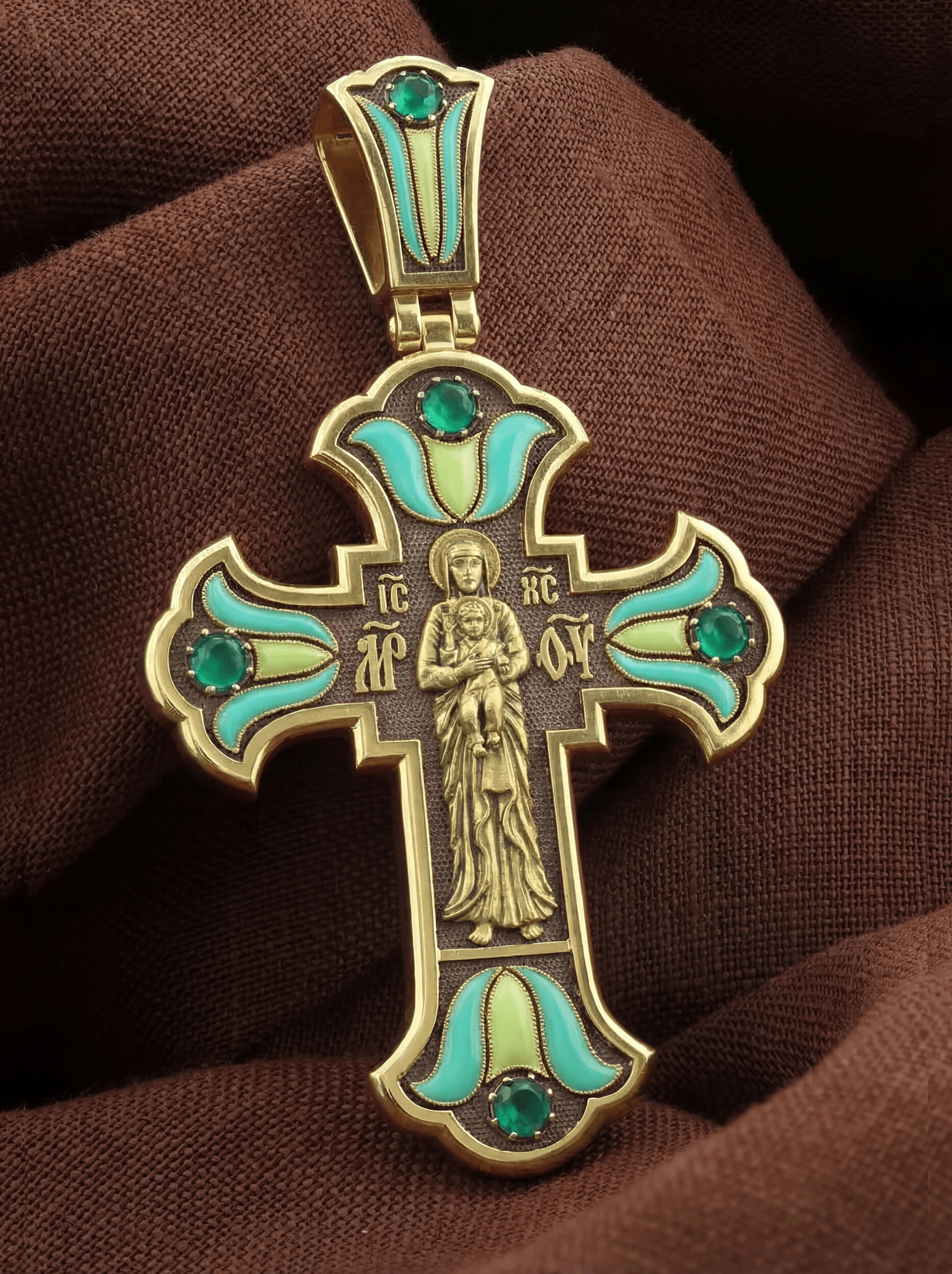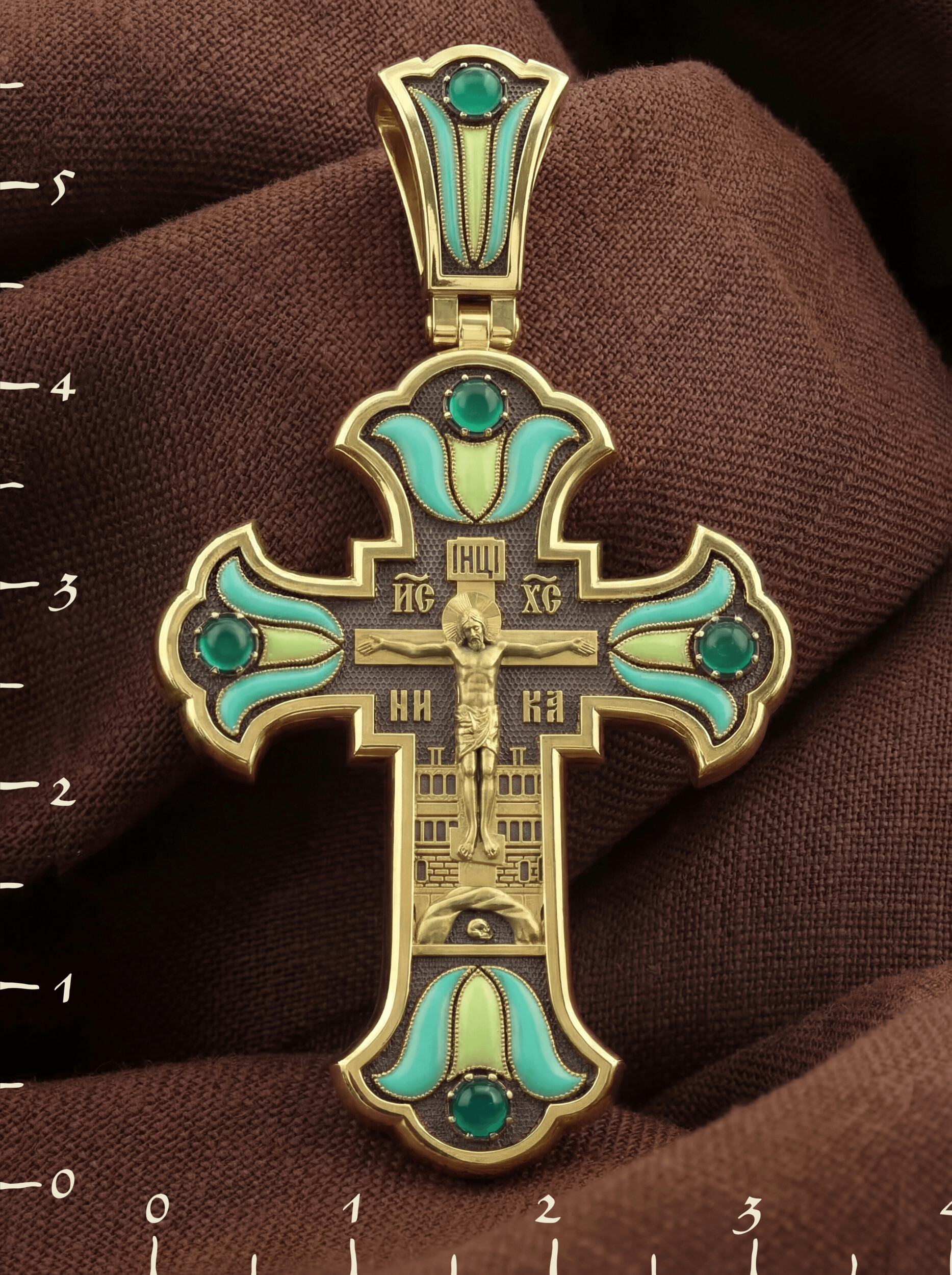 Крест из лимонного золота c эмаль и хризопразом