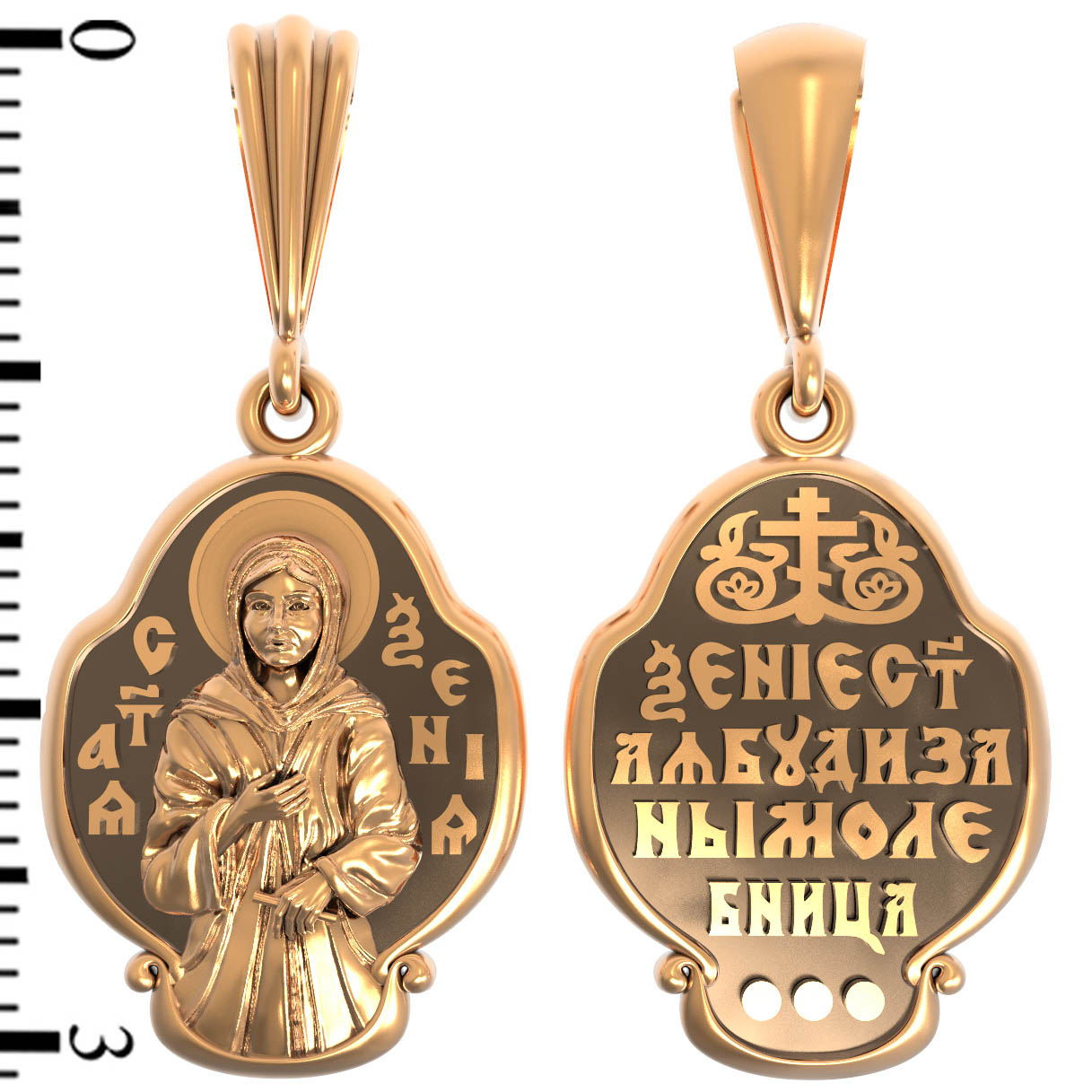 На оборотой стороне образка написана молитва: «Ксения святая, буди за нас молебница».