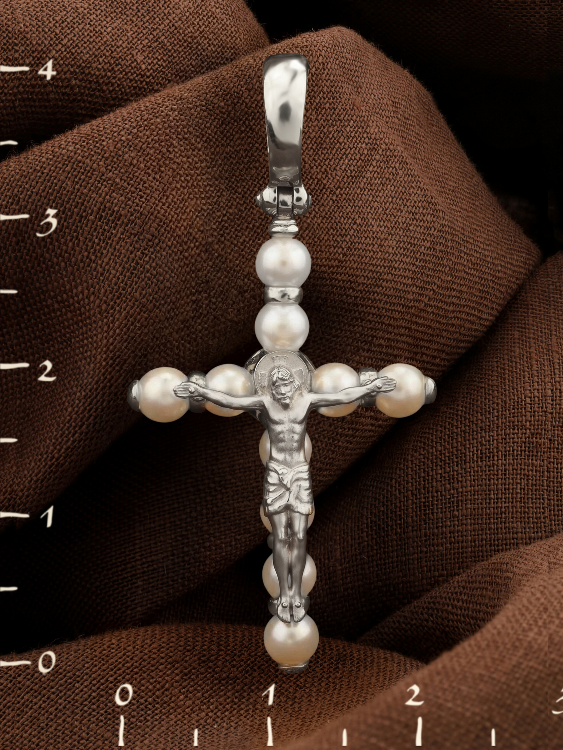Крест из белого золота c жемчугом