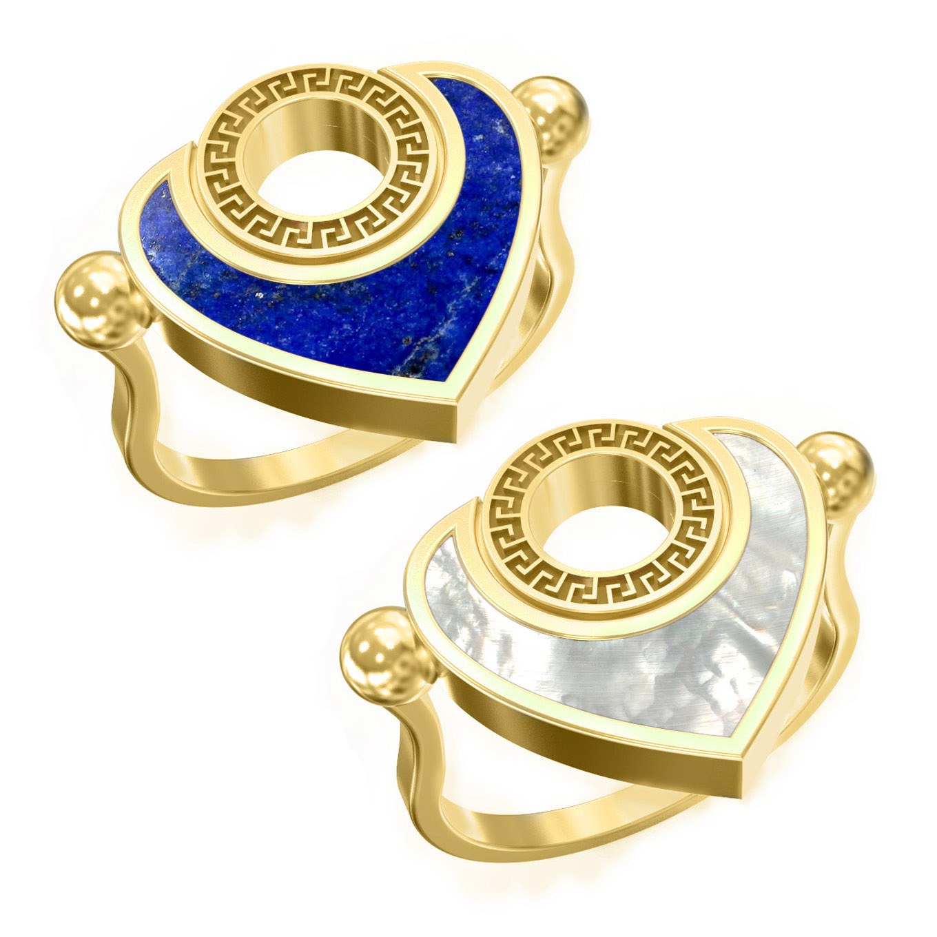 Кольцо из лимонного золота c лазуритом и перламутром
