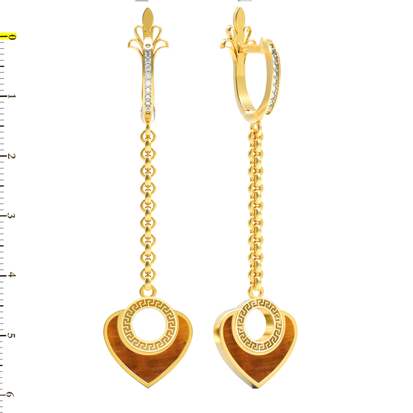 • Серьги из лимонного золота c фианитом и тигровым глазом