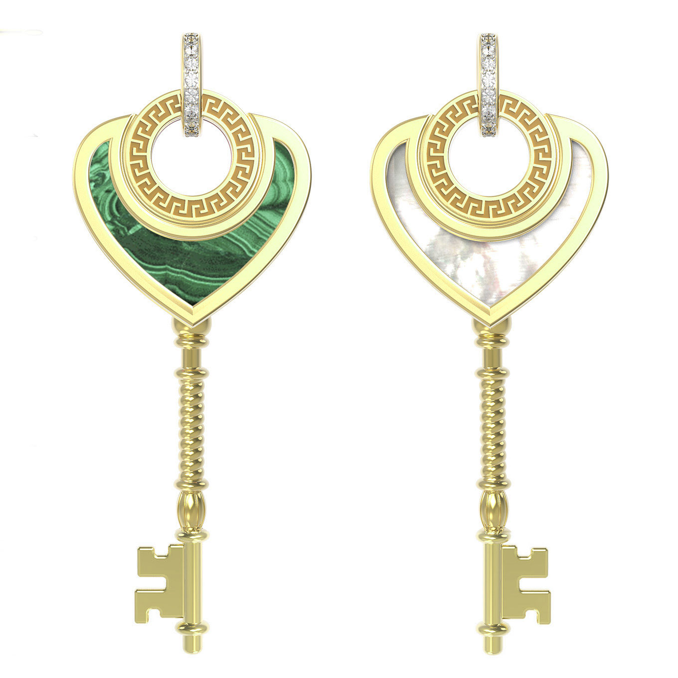 • Подвеска из золота c фианитом, малахитом и перламутром