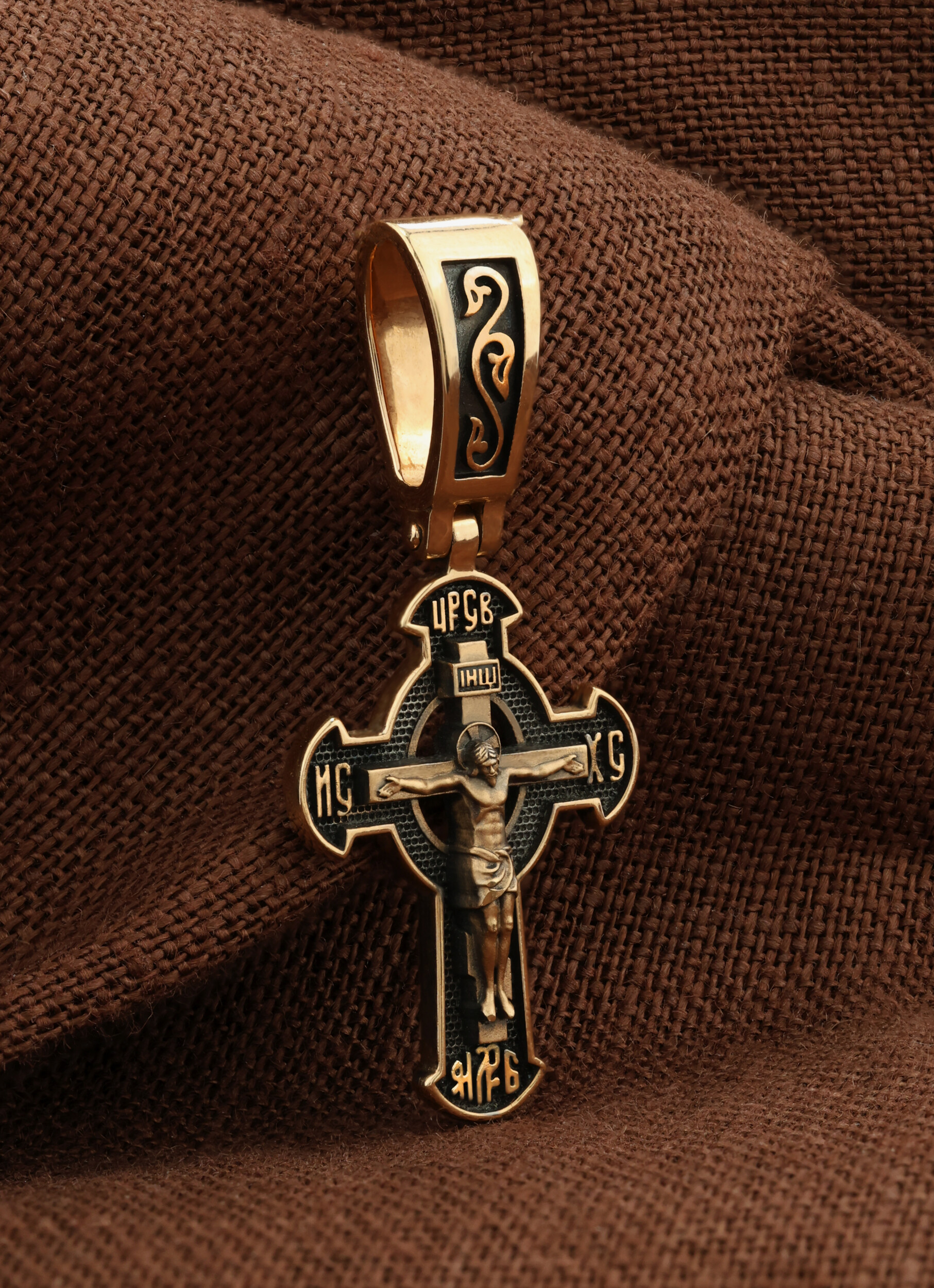 Оборотная сторона креста украшена растительным орнаментом. Помещенный на крест орнамент символизирует жизнедательную силу, животворное тепло креста. В растительный узор, на горизонтальной перекладине, вписано молитвенное славословие: «Спаси и сохрани». Эта надпись означает непрерывную молитву, совершаемую носителем данного креста.