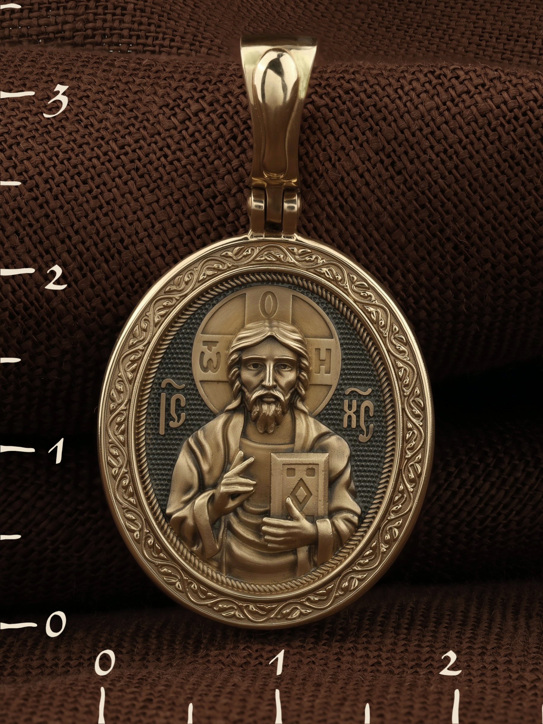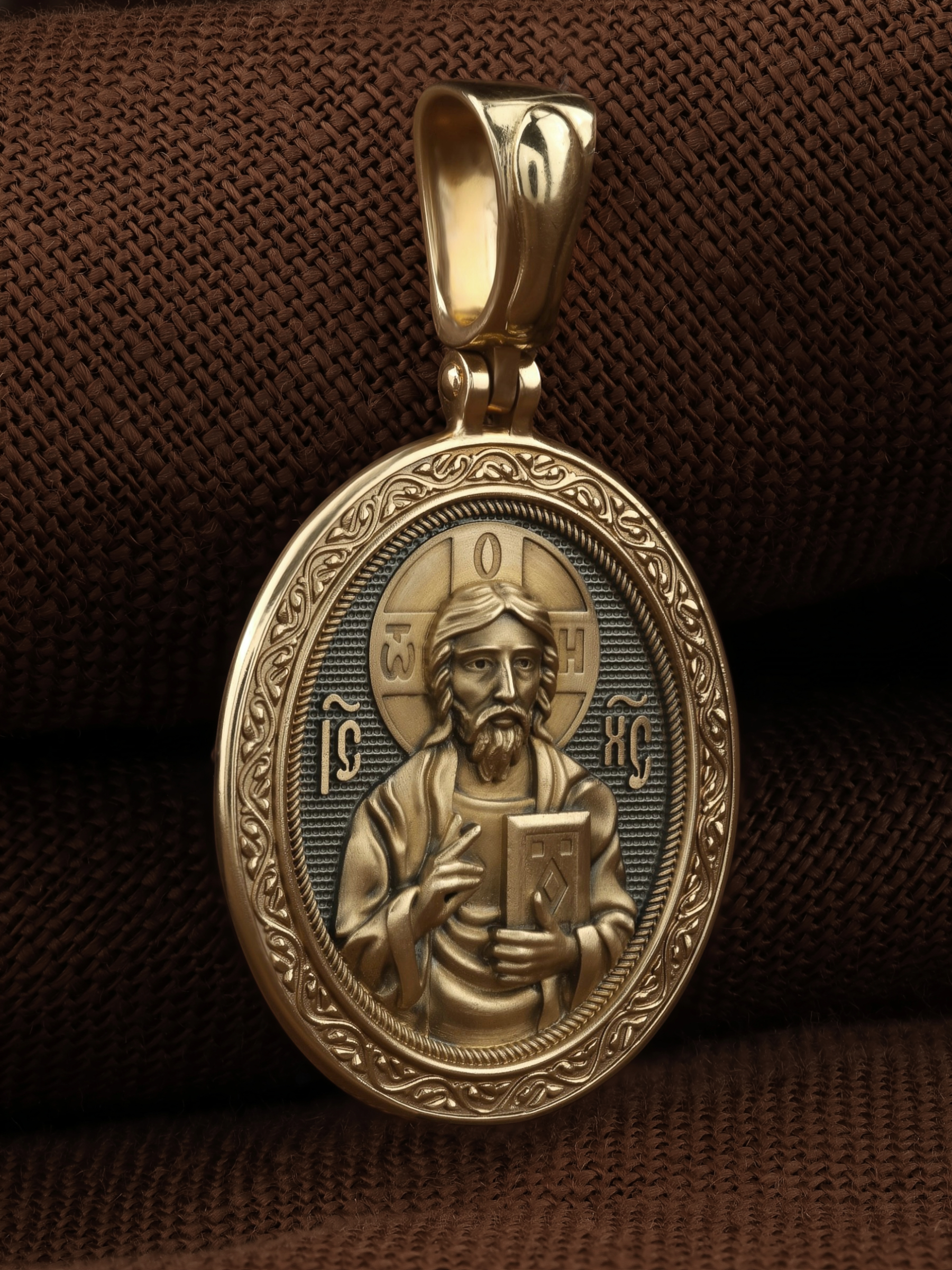 На лицевой стороне креста изображен Иисус Христос в образе Вседержителя, по-гречески «Пантократор». Это древнейший образ Спасителя, на котором Он представлен как властелин и правитель мира. Христос держит в руках Книгу, которая символизирует Книгу Бытия, то есть весь сотворенный Богом мир. В этой Книге судьбы всех людей, живущих на земле. Часто эту Книгу образно называют Книгой Жизни.