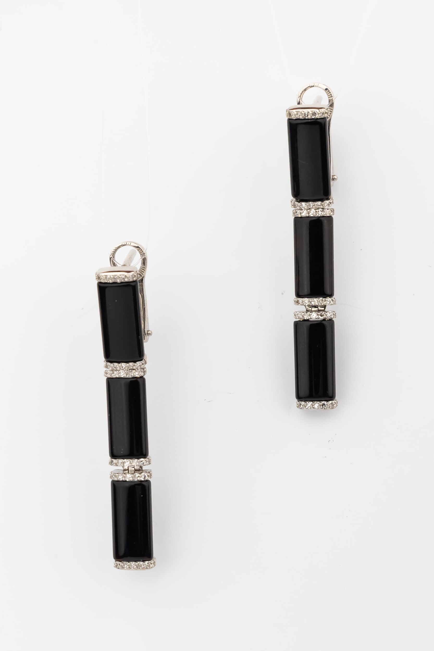 Серьги из белого золота c бриллиантами и ониксом