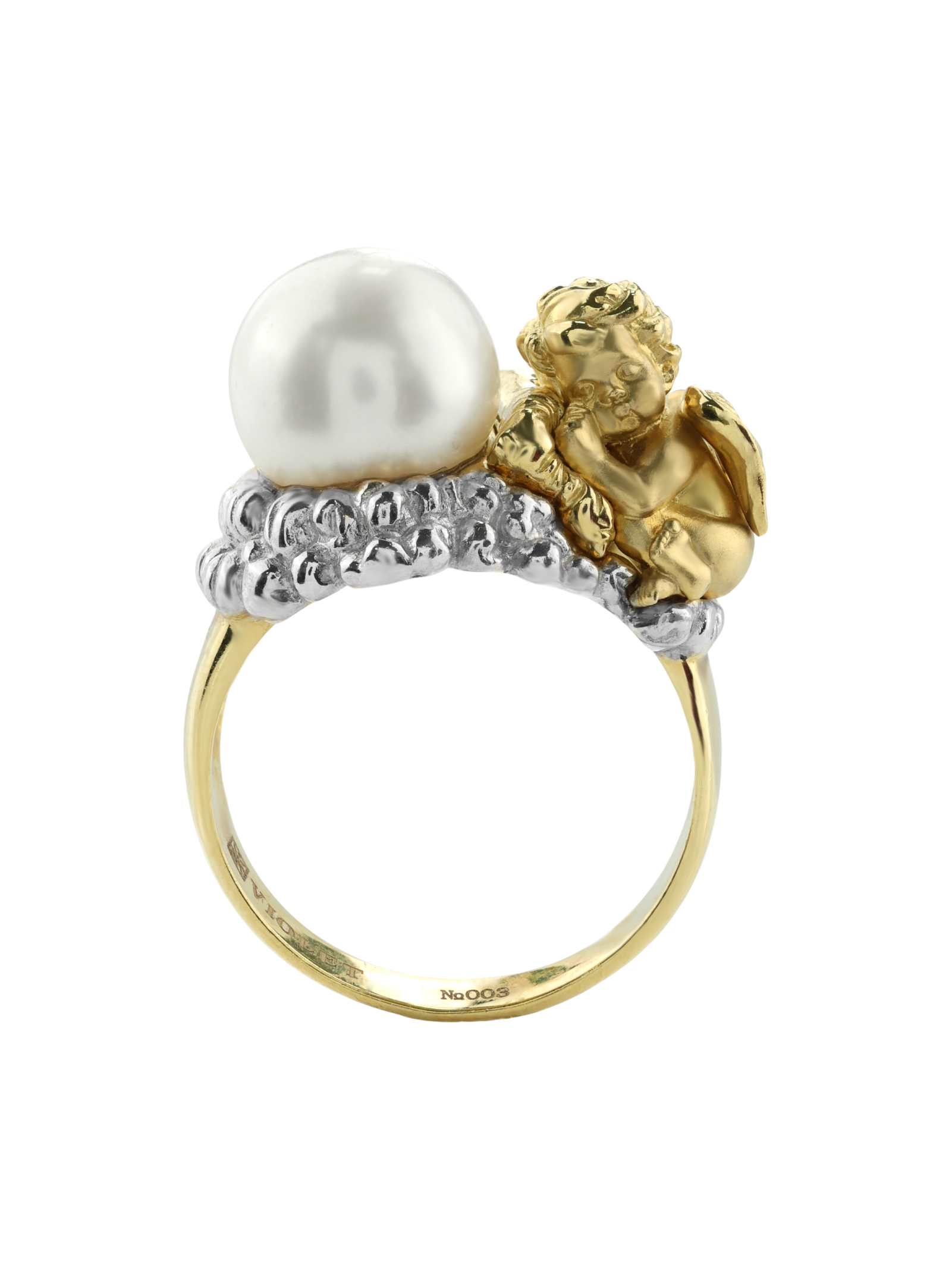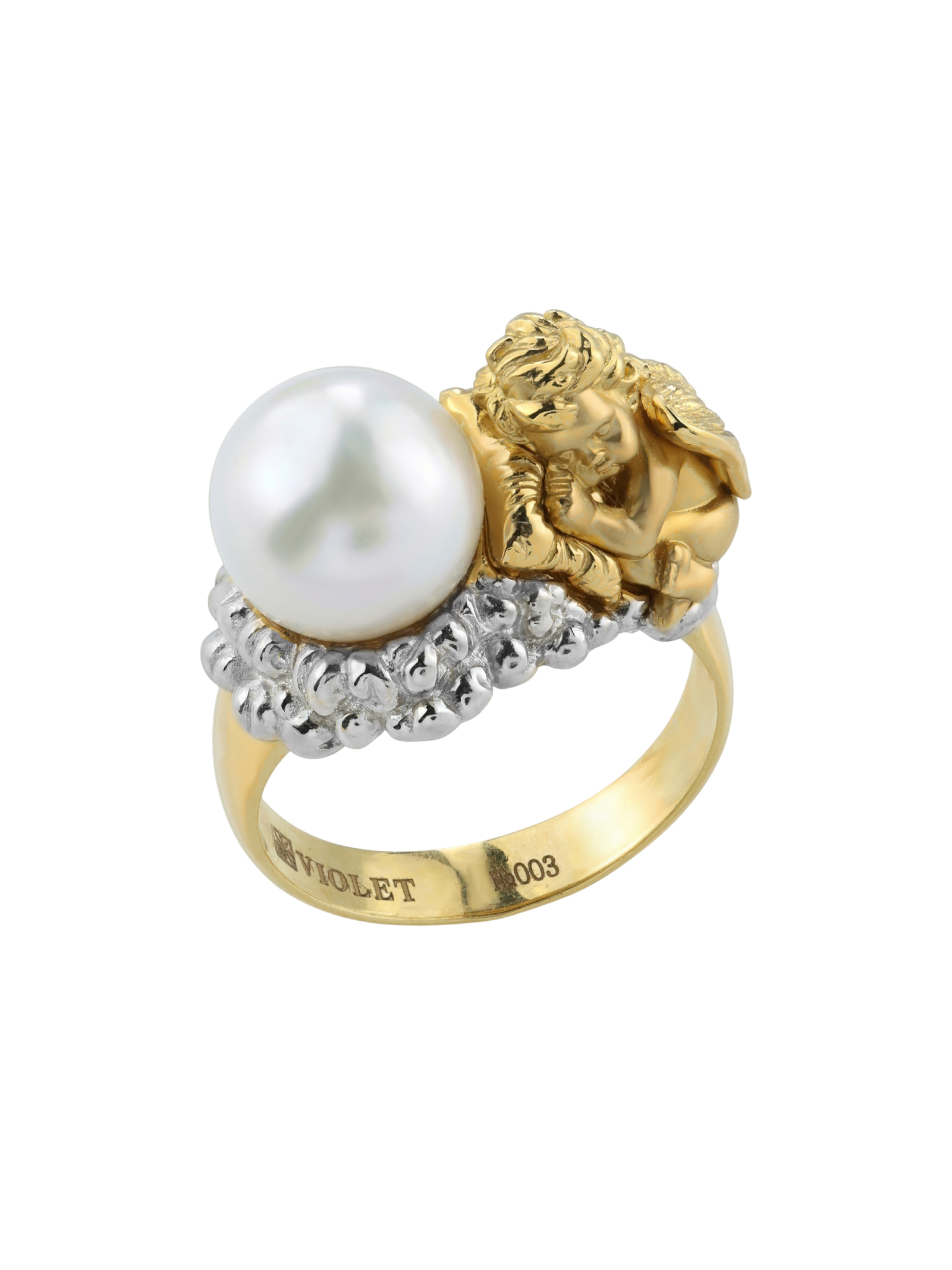 Кольцо из лимонного золота c жемчугом