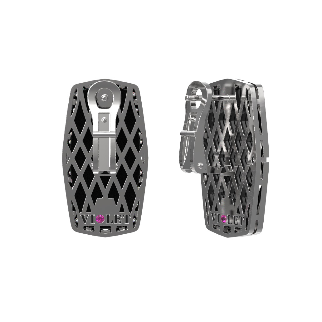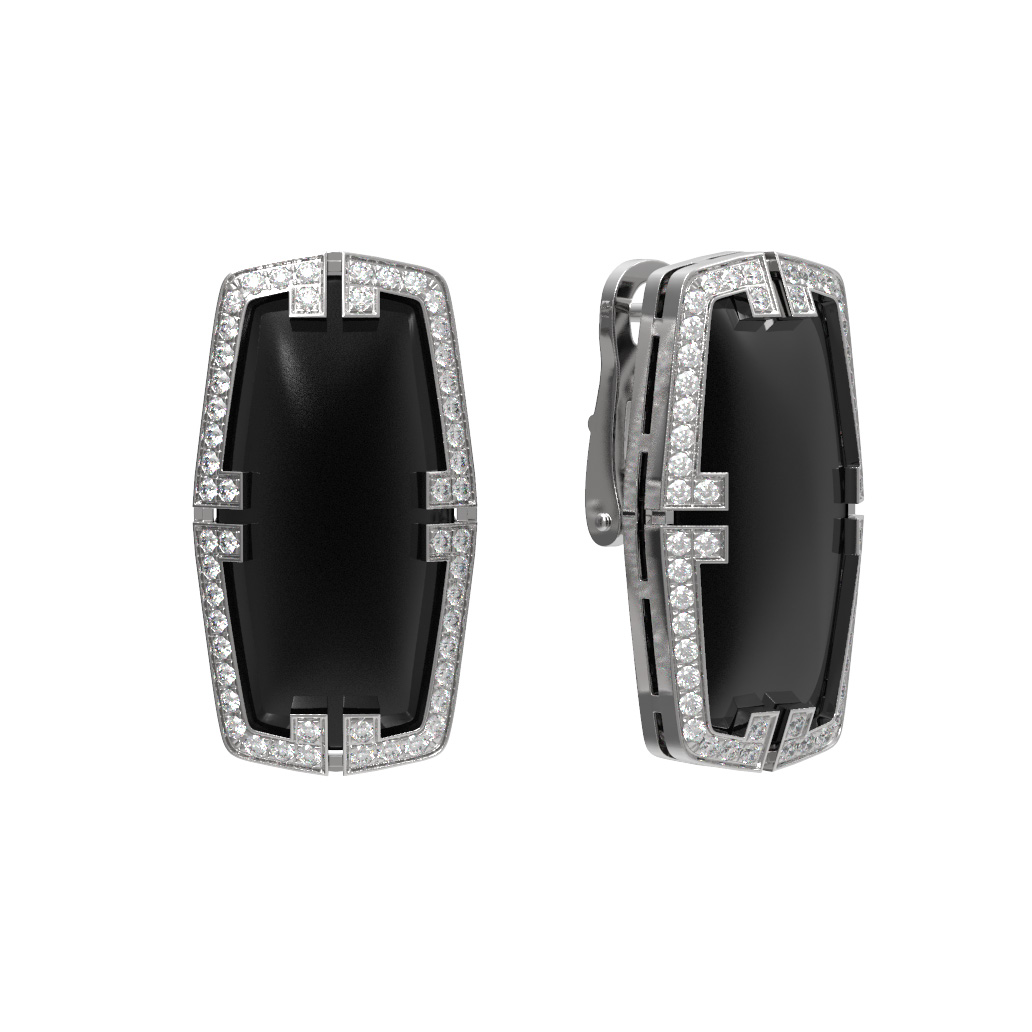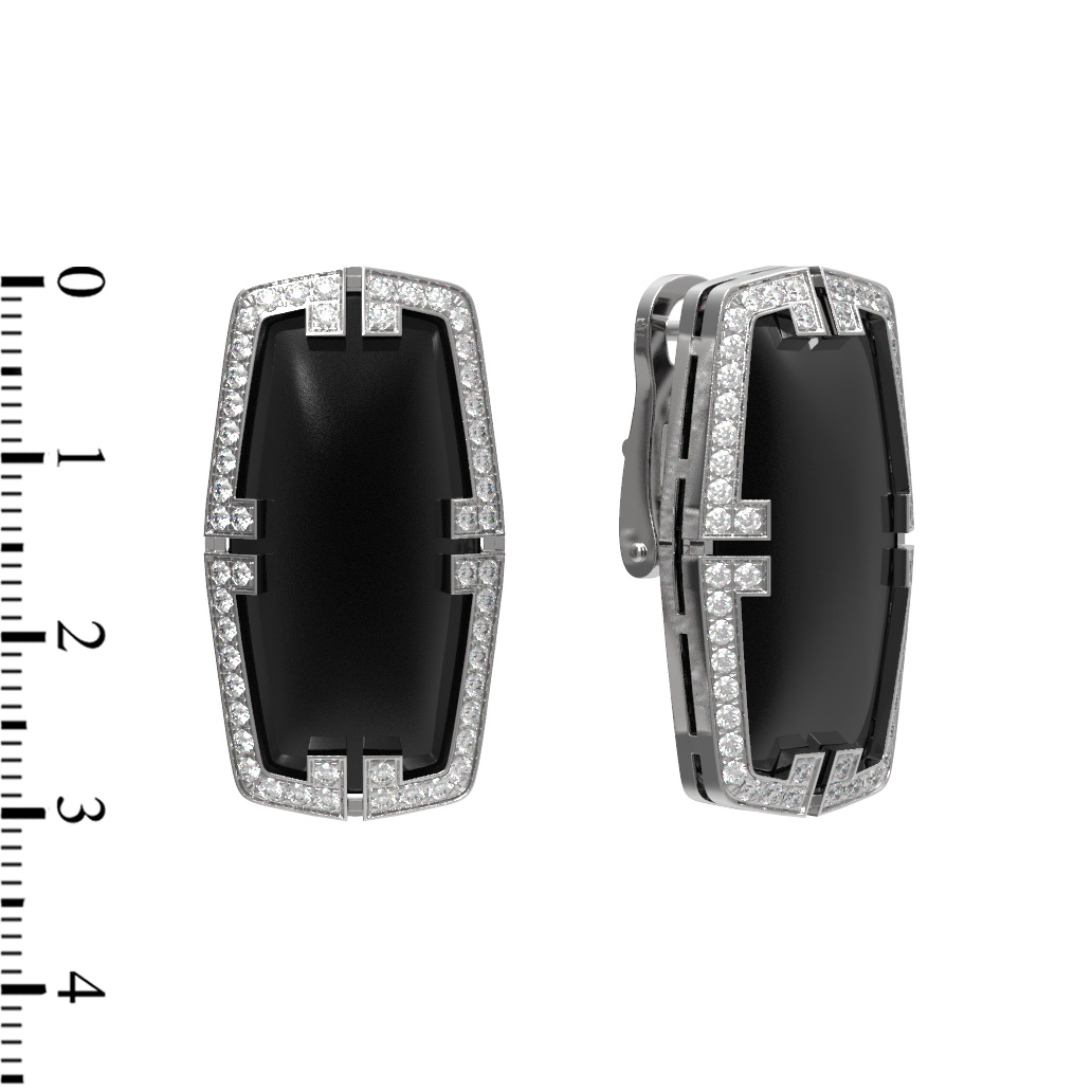 Серьги из белого золота c бриллиантами, рубином и ониксом