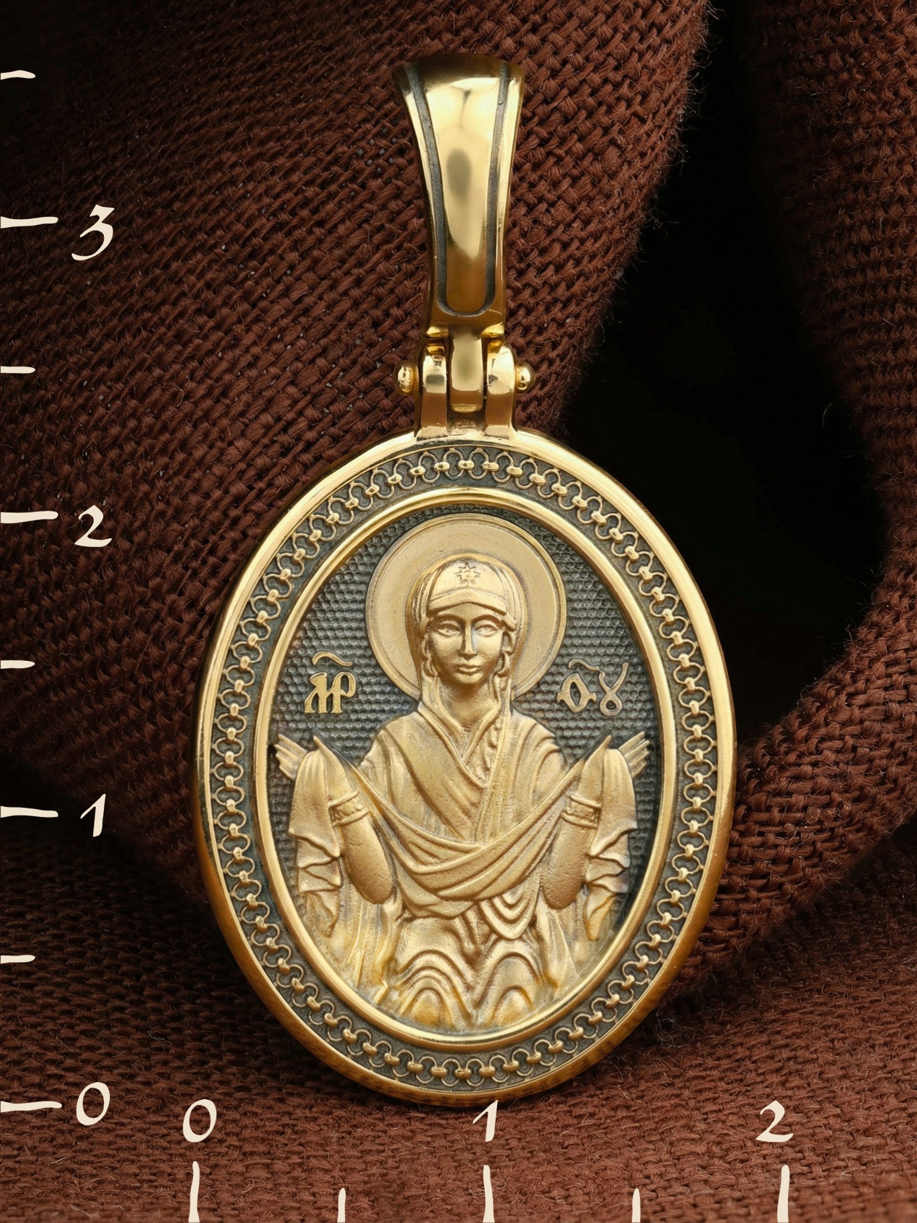На обороте образка написано: «Владычице, покрой нас Честным Твоим покровом и избави нас от всякия зла».