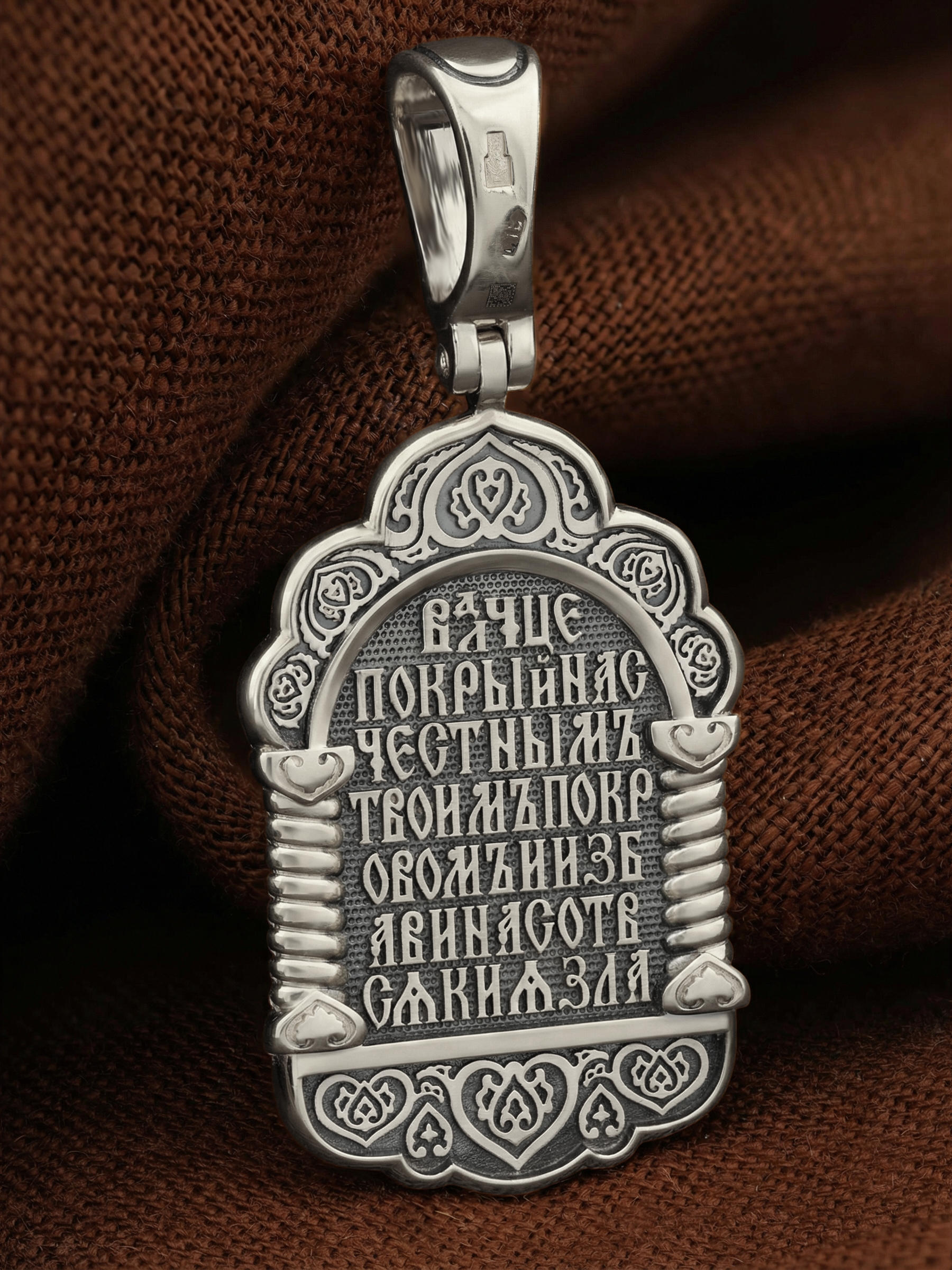 На обороте образка написано: «Владычице, покрой нас Честным Твоим покровом и избави нас от всякия зла».