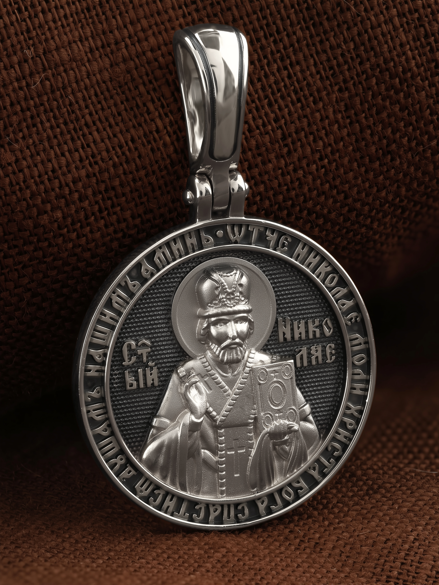 На лицевой стороне образка изображен Святитель Николай архиепископ Мир Ликийских, Чудотворец. Он является одним из самых почитаемых святых в православном мире. Избранник Божий Николай стал вершиной всех добродетелей. С кем из величайших праведников не сравнялся он образом духовной красоты, кому из них не последовал в своих деяниях и чудотворениях? Всеблаженный Николай был кроток, как Моисей, мужественен, как Давид, славен простотой нрава, как Иаков. Словно Ной, он спасал стадо Господне в новом ковчеге от потопа ересей. Вся жизнь святого Николая — это служение Богу. Много великих чудес сотворил на земле и на море великий Святитель Николай Угодник. Он укрощал штормы, спасал от потопления и выносил на сушу из глубины морской, освобождал из плена и приносил освобожденных домой, избавлял от уз и темницы, освобождал от смерти и подавал многим различные исцеления: слепым — прозрение, хромым — хождение, глухим — слух.