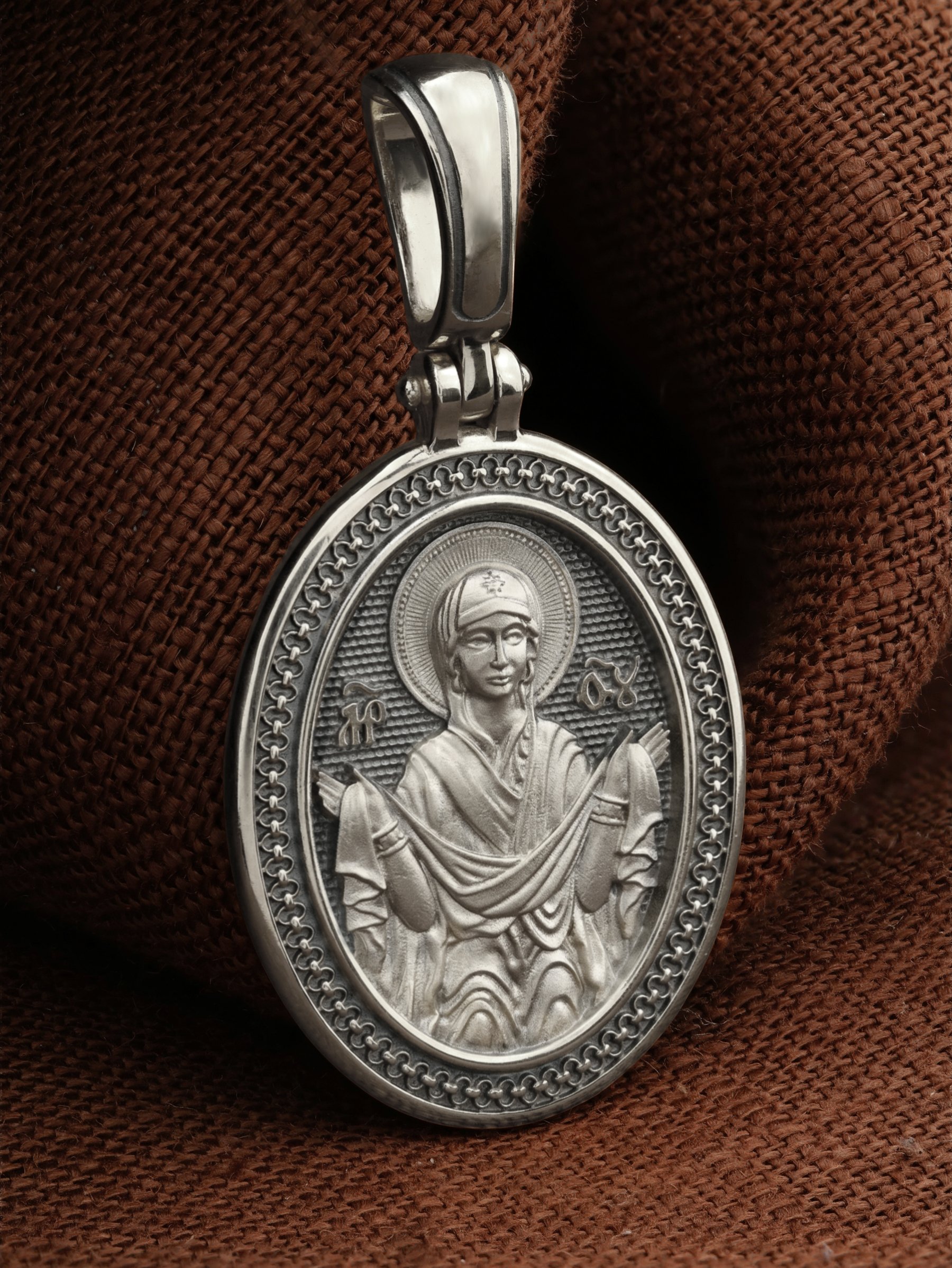 На обороте образка написано: «Владычице, покрой нас Честным Твоим покровом и избави нас от всякия зла».