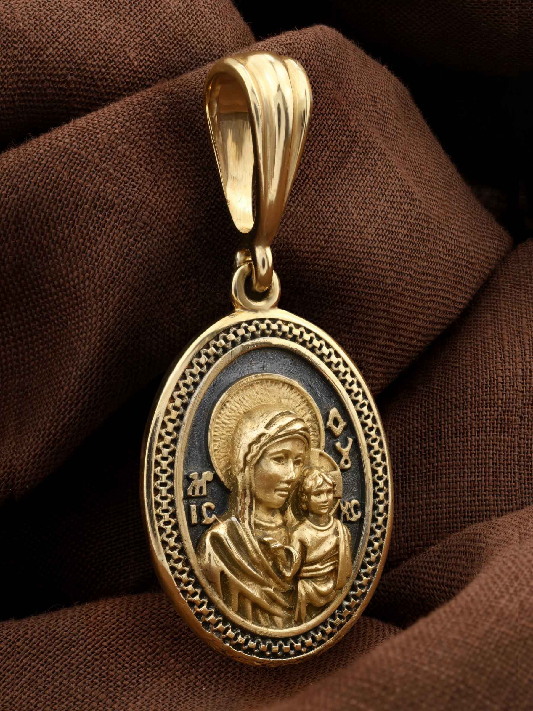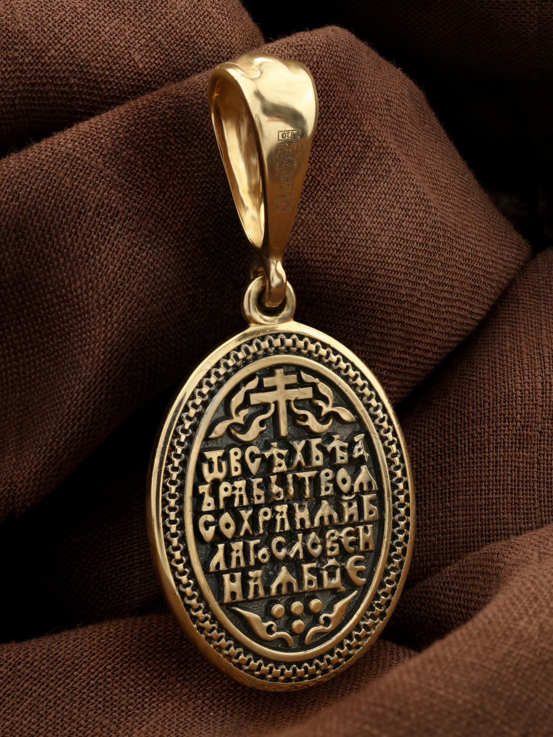 На лицевой части образка изображена Казанская икона Пресвятой Богородицы — одна из самых почитаемых в России. Икона была явлена на пожарище в Казани в 1579 году. В 1904 году святыня была похищена и уничтожена, но чудотворную силу иконы Богородица явила во многих ее списках. Молитва перед Казанской иконой Божьей Матери помогает во всех сложных случаях жизни, во всех печалях, невзгодах, скорбях.