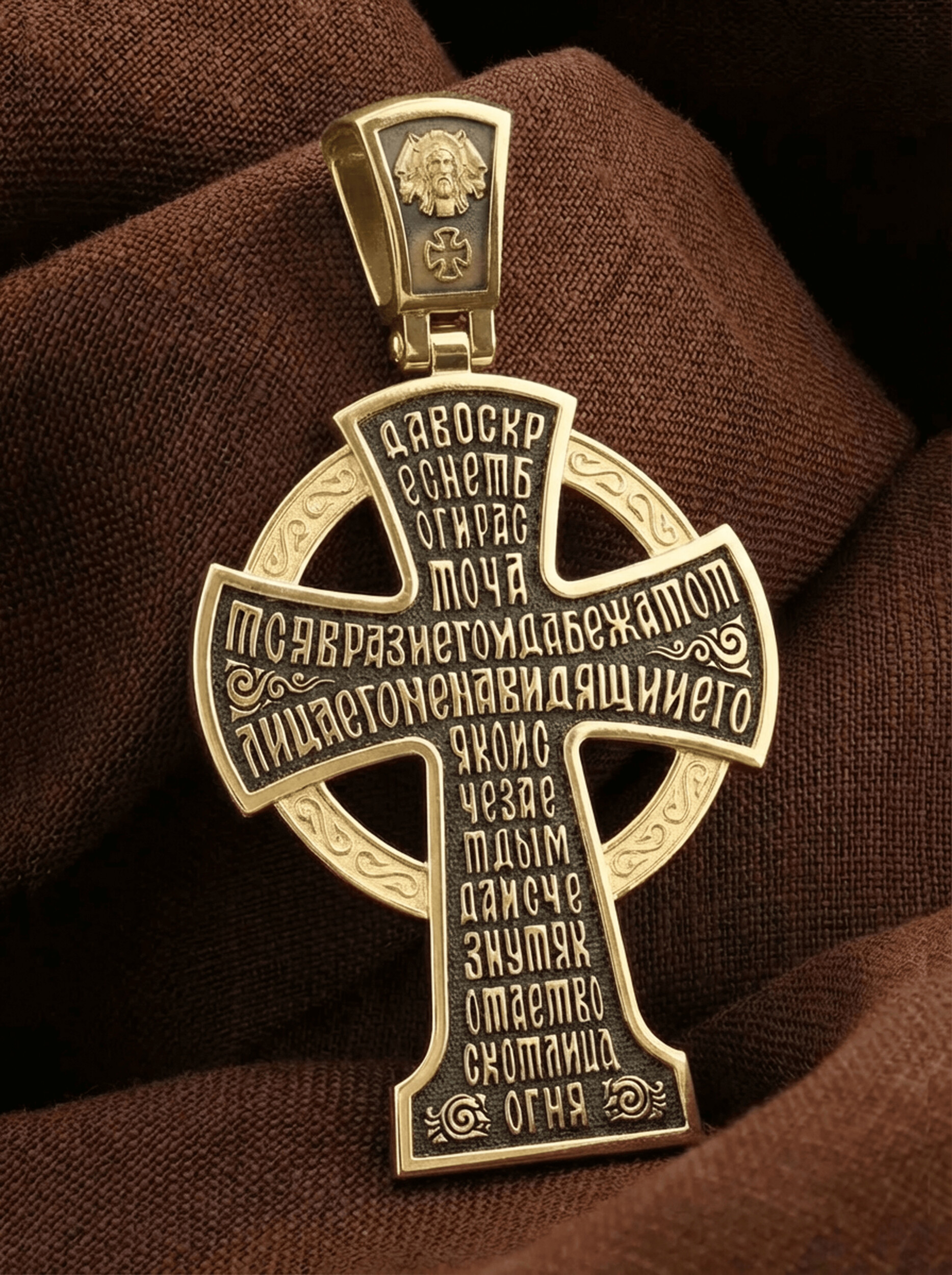 На обороте написан начальный стих оградительной молитвы Честному Кресту Господню: «Да воскреснет Бог, и расточатся врази Его, и да бежат от лица Его ненавидящии Его. Яко исчезает дым, да исчезнут; яко тает воск от лица огня, тако да погибнут беси от лица любящих Бога и знаменующихся крестным знамением, и в веселии глаголющих: радуйся, Пречестный и Животворящий Кресте Господень, прогоняй бесы силою на тебе пропятаго Господа нашего Иисуса Христа, во ад сшедшаго и поправшаго силу диаволю, и даровавшаго нам тебе Крест Свой Честный на прогнание всякаго супостата. О, Пречестный и Животворящий Кресте Господень! Помогай ми со Святою Госпожею Девою Богородицею и со всеми святыми во веки. Аминь».