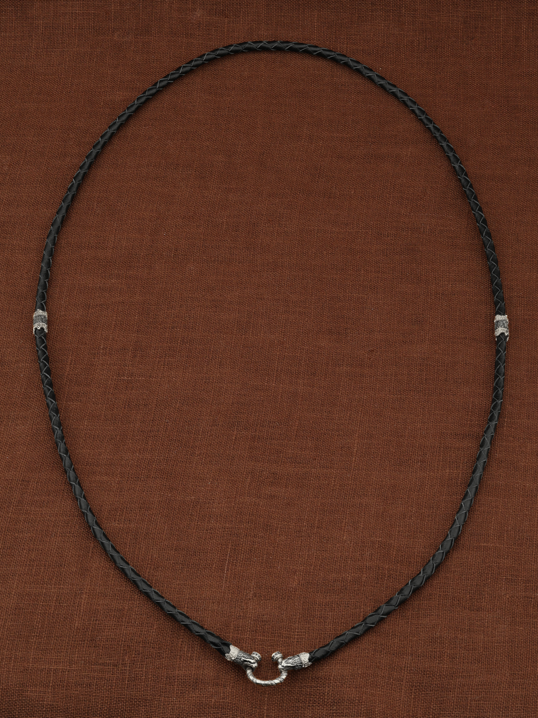 Гайтан из белого золота c кожаным шнурком