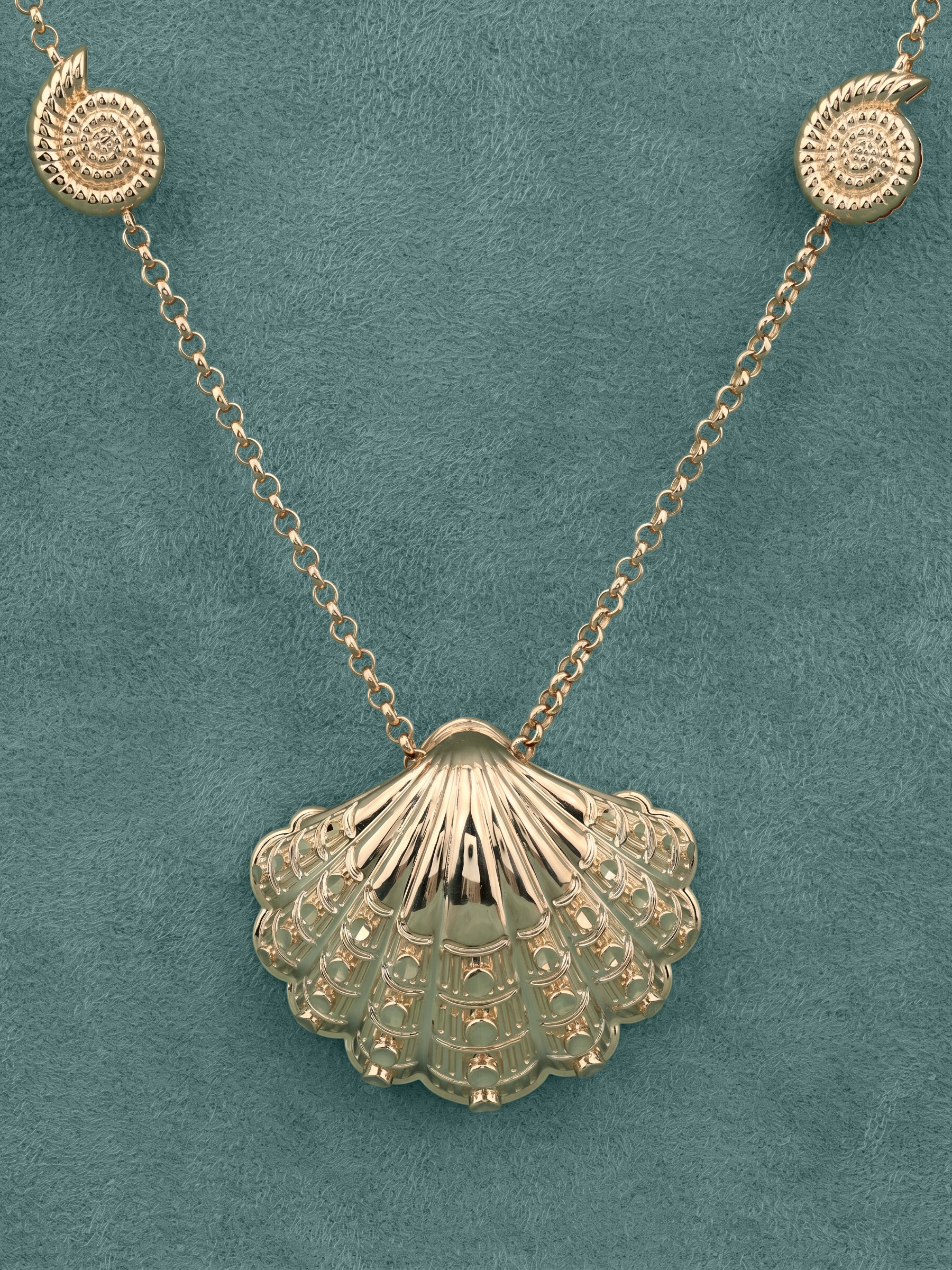 Колье из красного золота 585 пробы — это изысканное ювелирное украшение, которое станет центральным акцентом вашего образа. Данная модель входит в линейку Vioretty — Oceano и вдохновлена эстетикой морских глубин, воплощенной в благородном металле. Центральным элементом украшения выступает изящная подвеска в виде стилизованной раковины, детализация которой подчеркивает высокое мастерство исполнения. Дополнительный шарм изделию придают миниатюрные декоративные элементы в форме спиралевидных ракушек, гармонично интегрированные в цепочку.