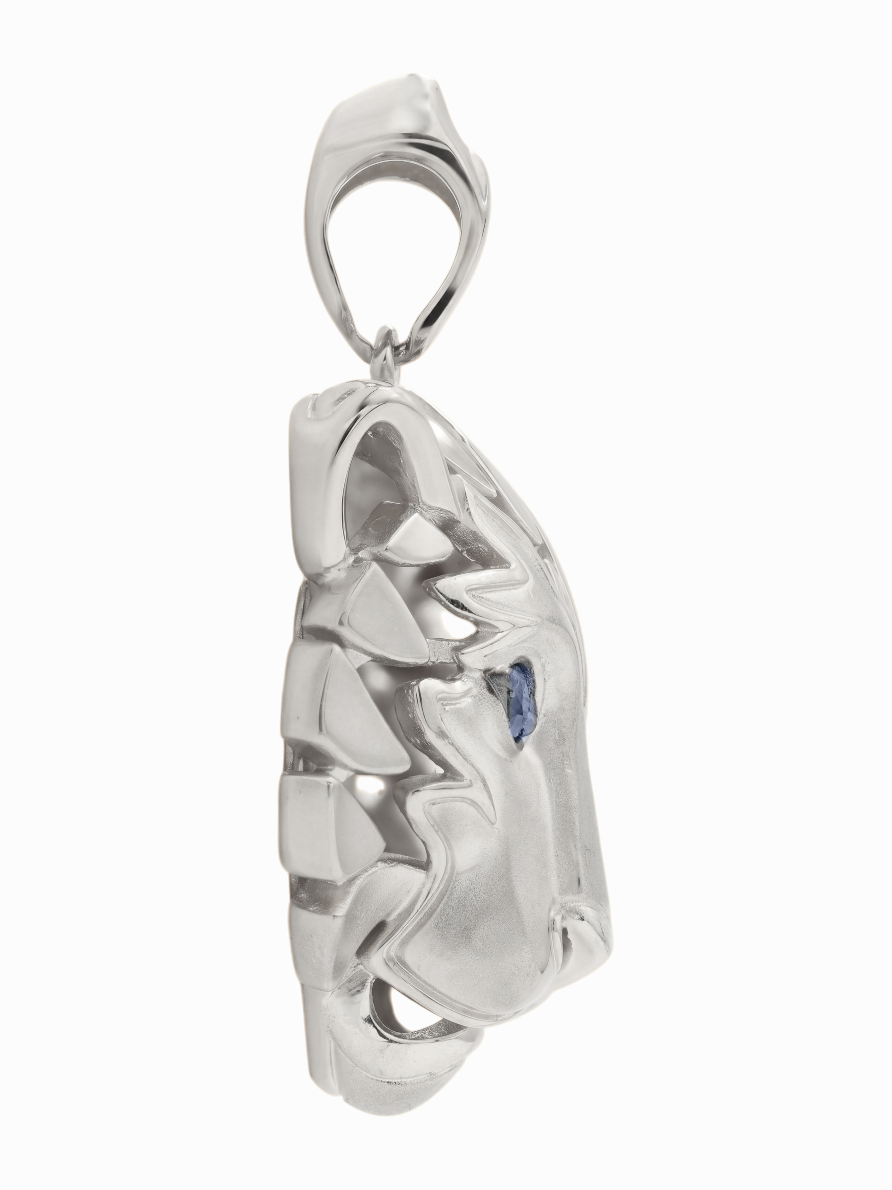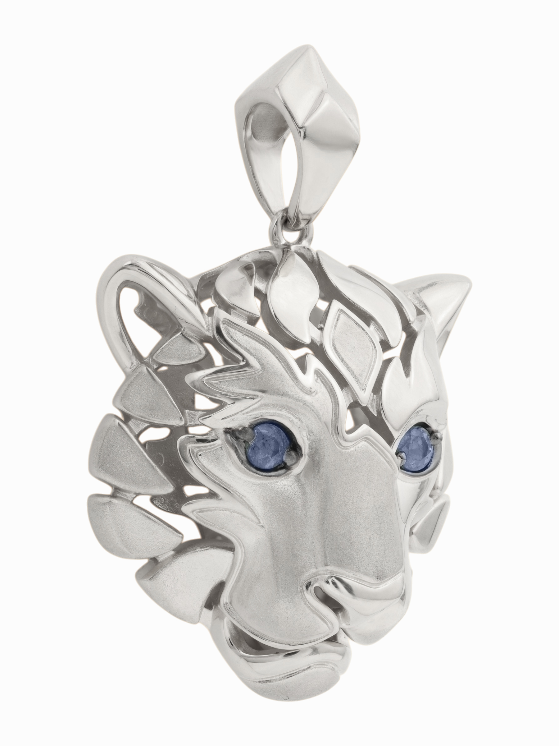 В дизайне использованы два сапфира круглой формы, которые служат выразительными глазами хищника, придавая подвеске особый шарм и магическую привлекательность. Качественная проработка линий и формы делает это изделие великолепным дополнением к повседневному или вечернему стилю. Универсальный дизайн позволяет носить подвеску как женщинам, так и мужчинам.