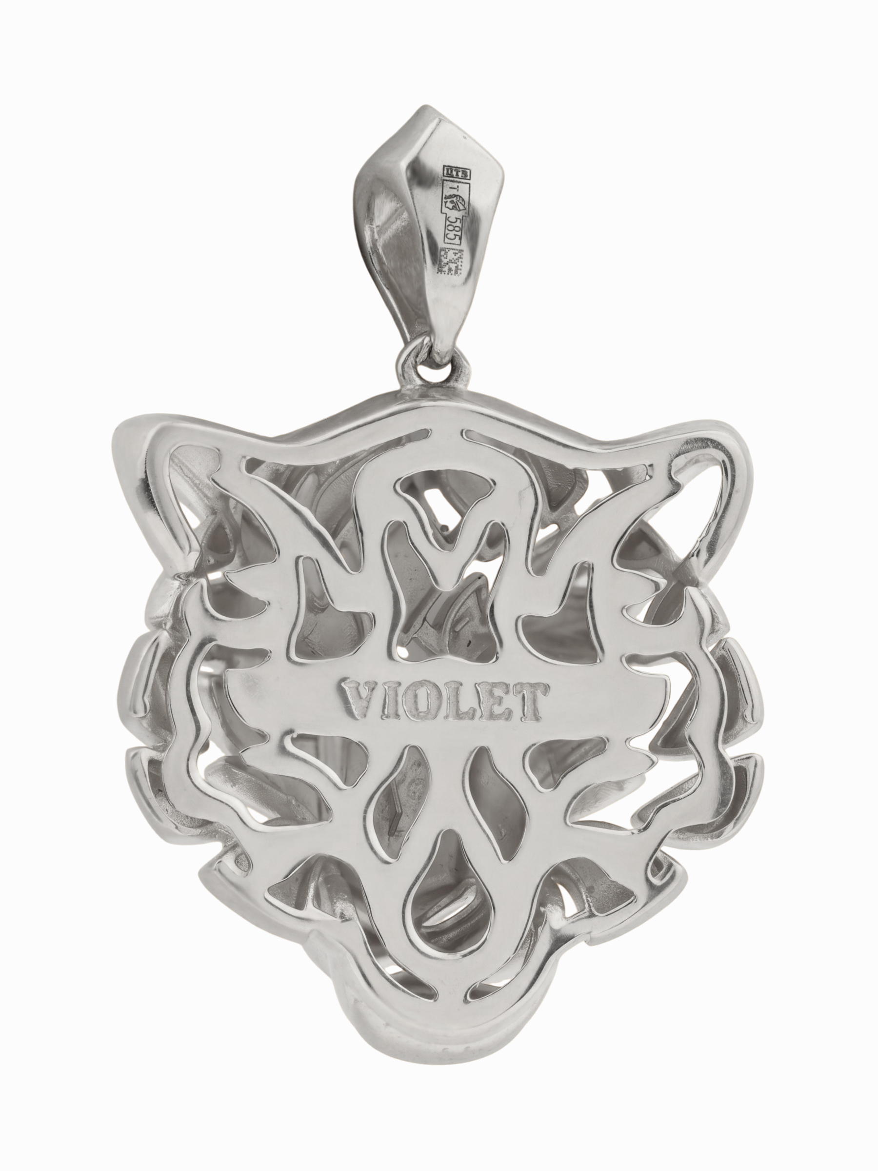 Подчеркните свою индивидуальность с помощью изысканной подвески из белого золота 585 пробы. Украшение выполнено в виде головы грациозного тигра — символа силы и уверенности. Ювелирное изделие из коллекции Vioretty — TIGRE станет акцентным элементом вашего образа, привлекая внимание своей детализацией и благородным блеском металла. Холодный оттенок белого золота идеально сочетается с глубоким синим цветом вставок.