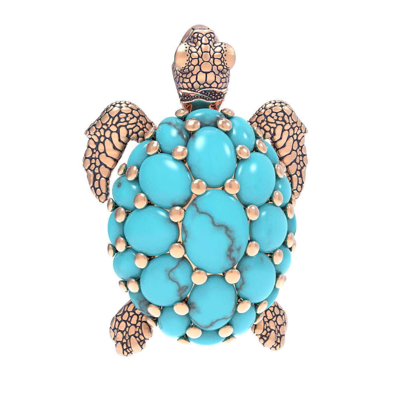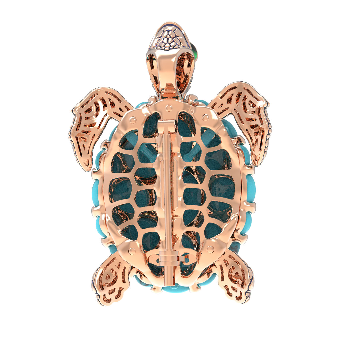 Брошь из золота c эмаль и бирюзой