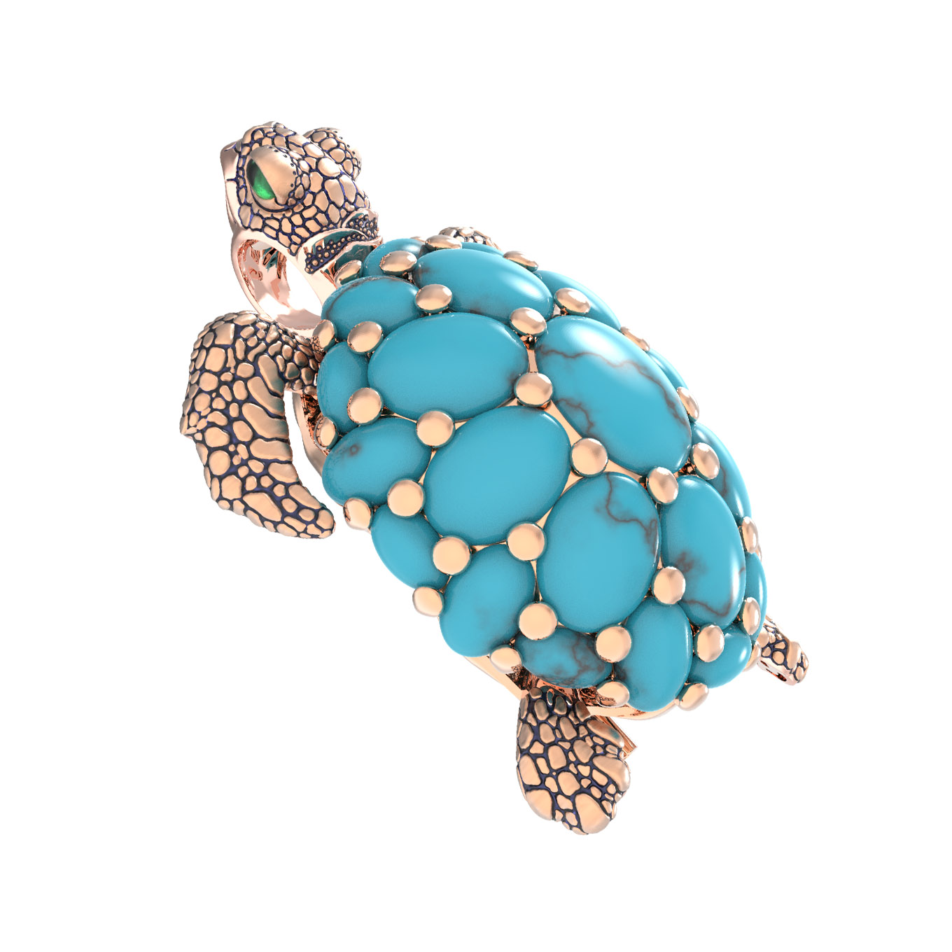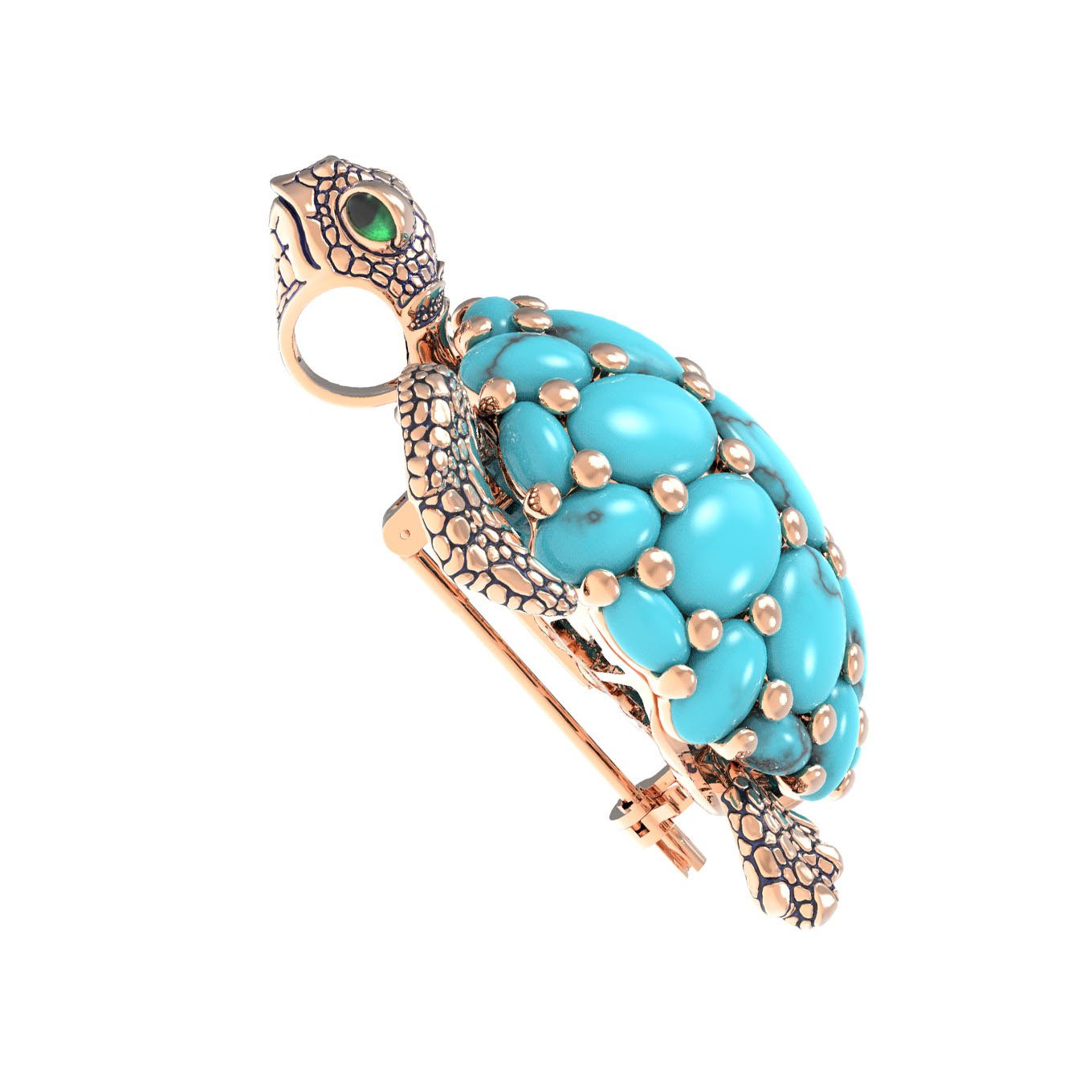 Брошь из золота c эмаль и бирюзой