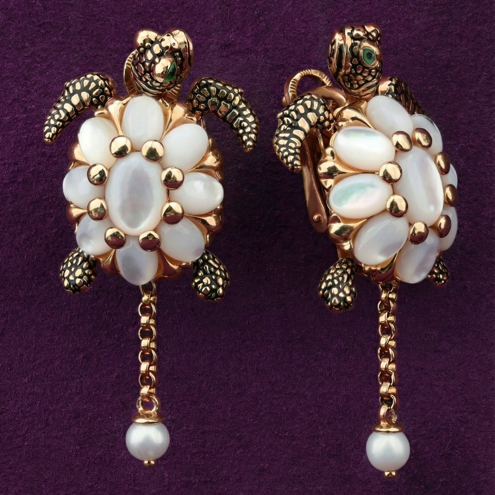 Серьги из золота c эмаль, жемчугом и перламутром