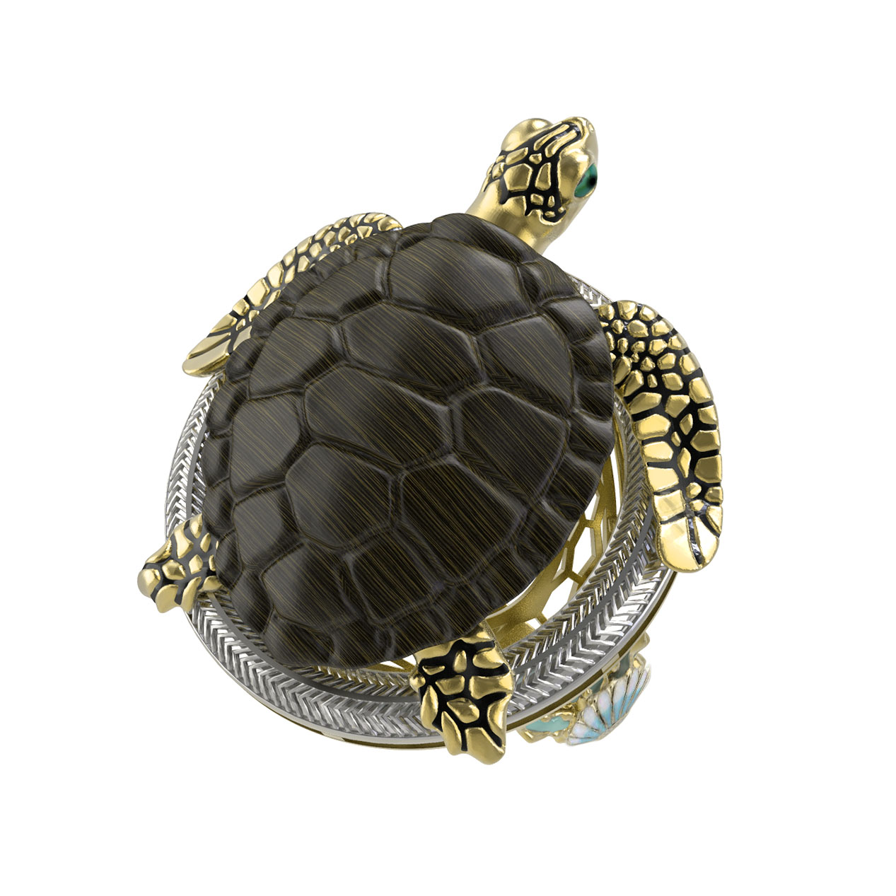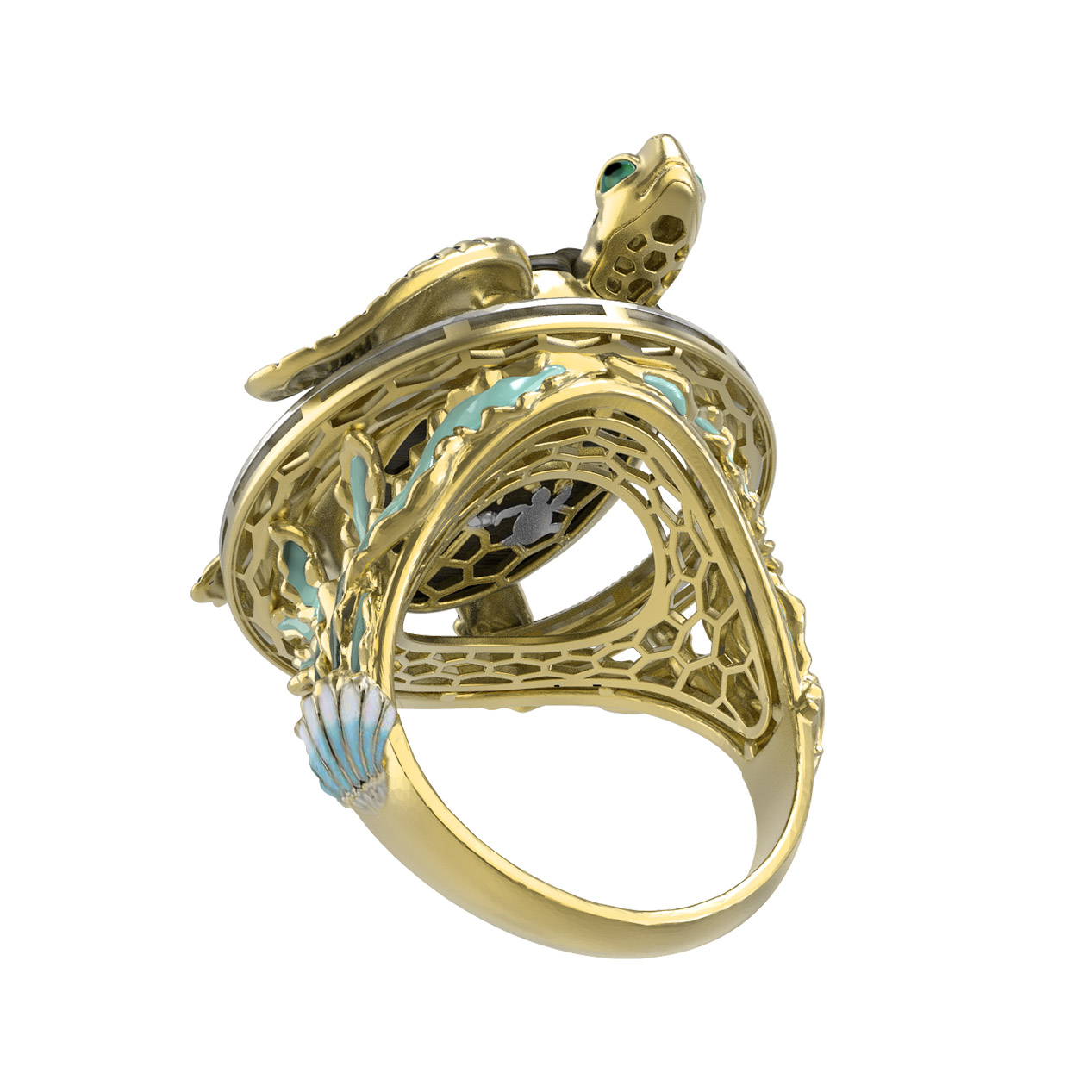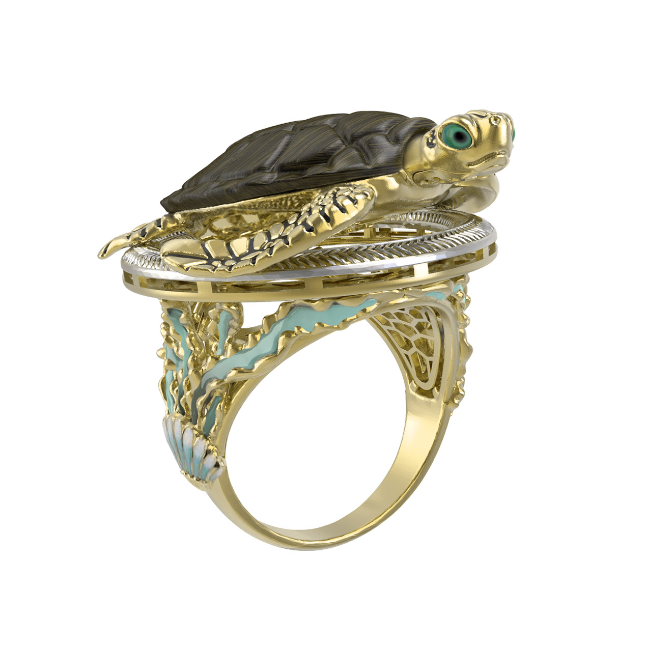 Кольцо из лимонного золота c эмаль и железным деревом