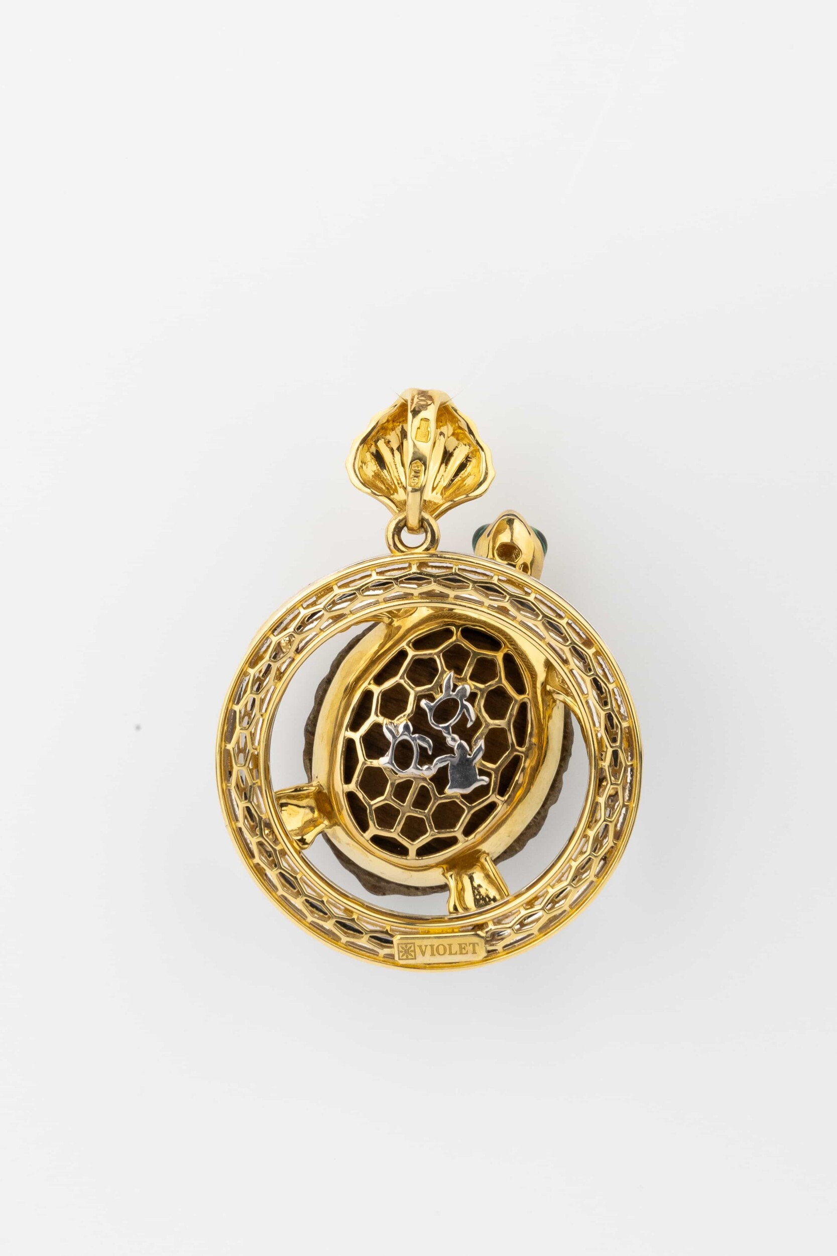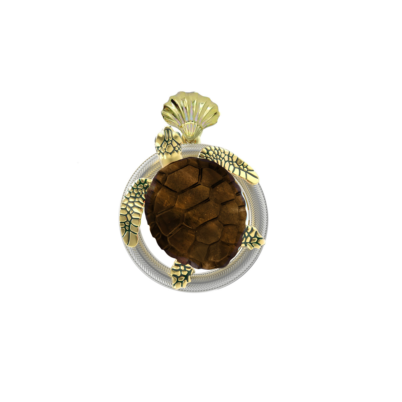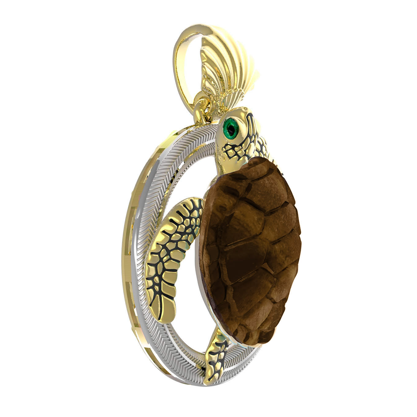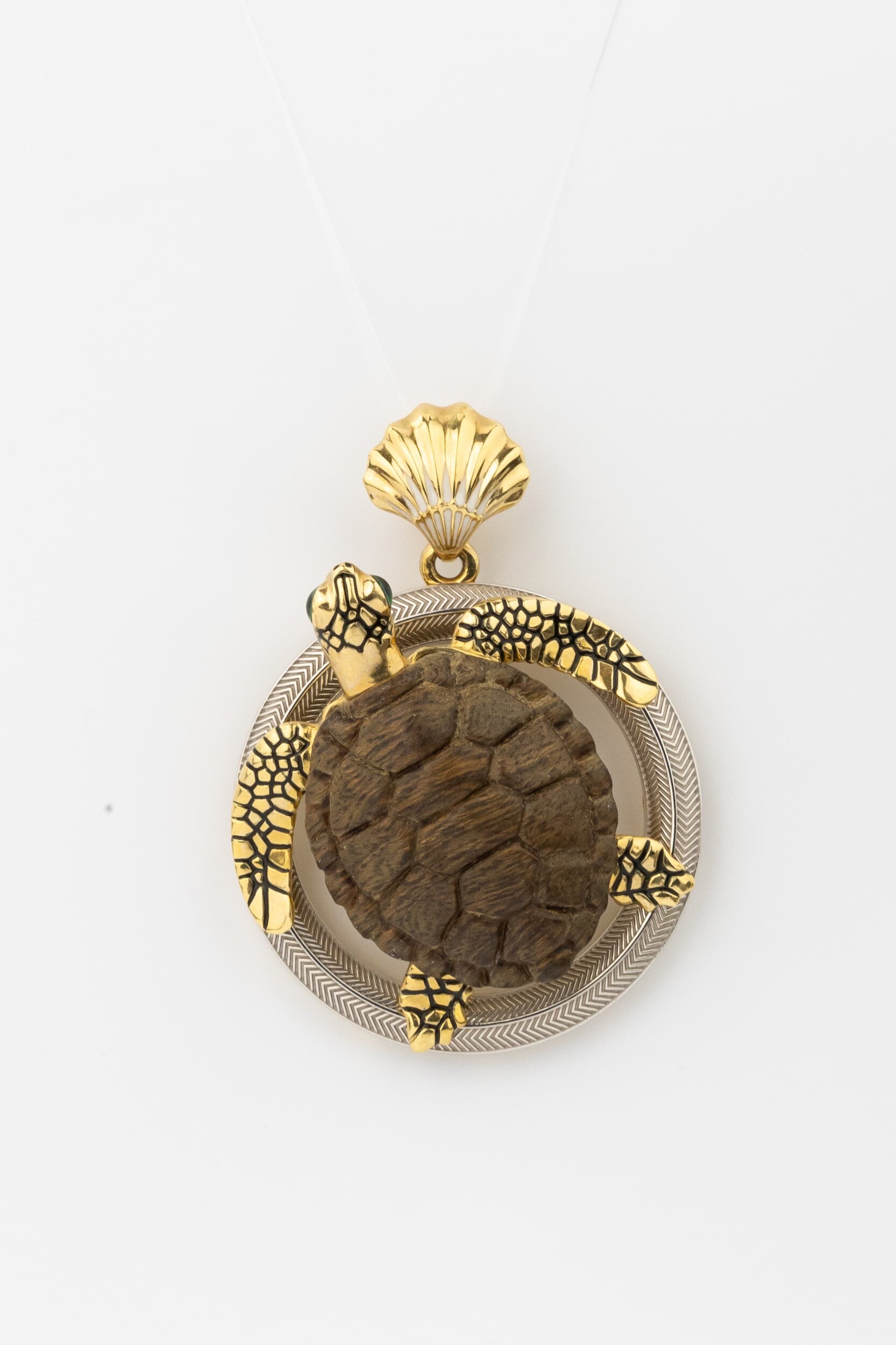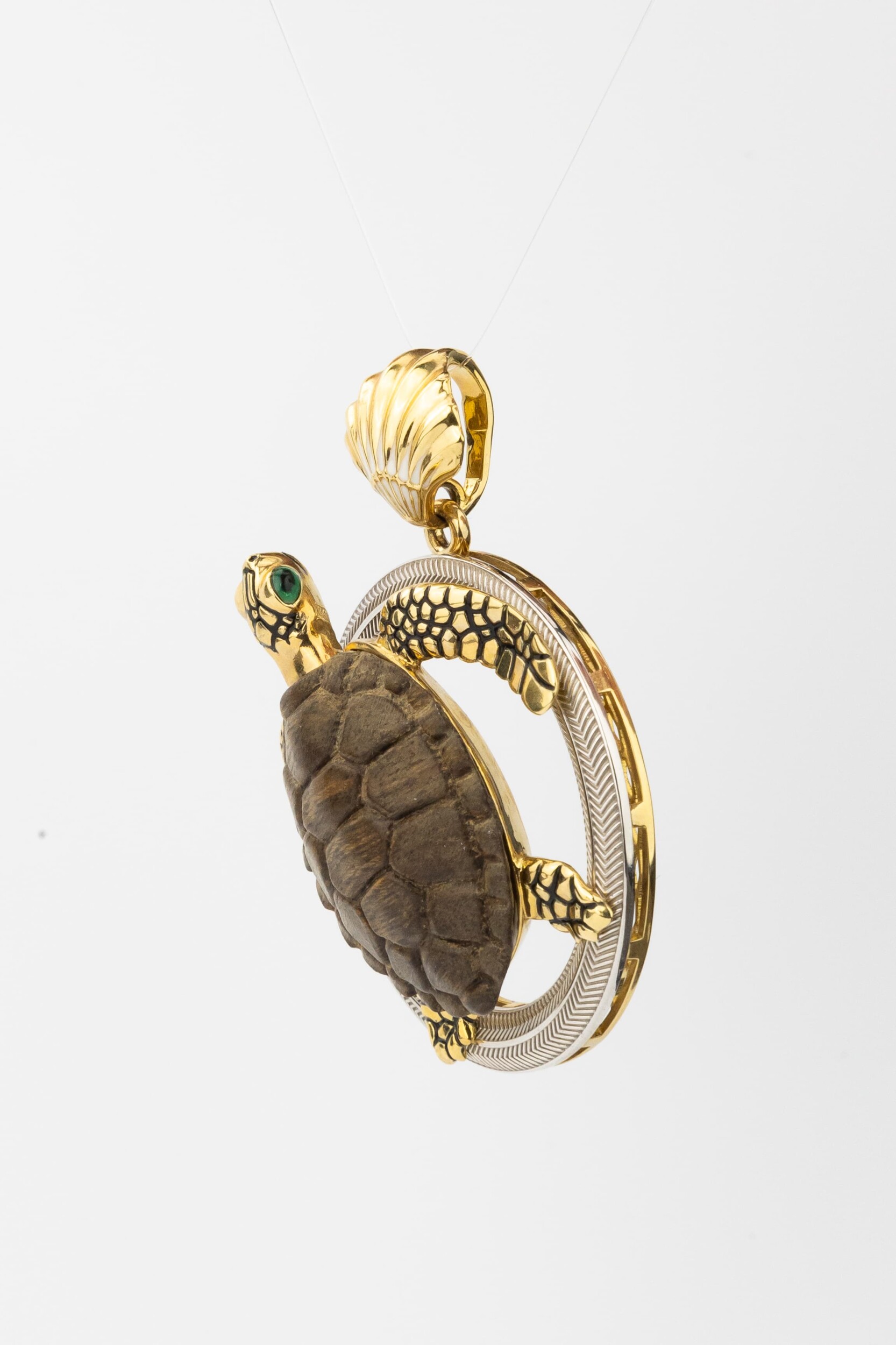 Подвеска из лимонного золота c эмаль и железным деревом