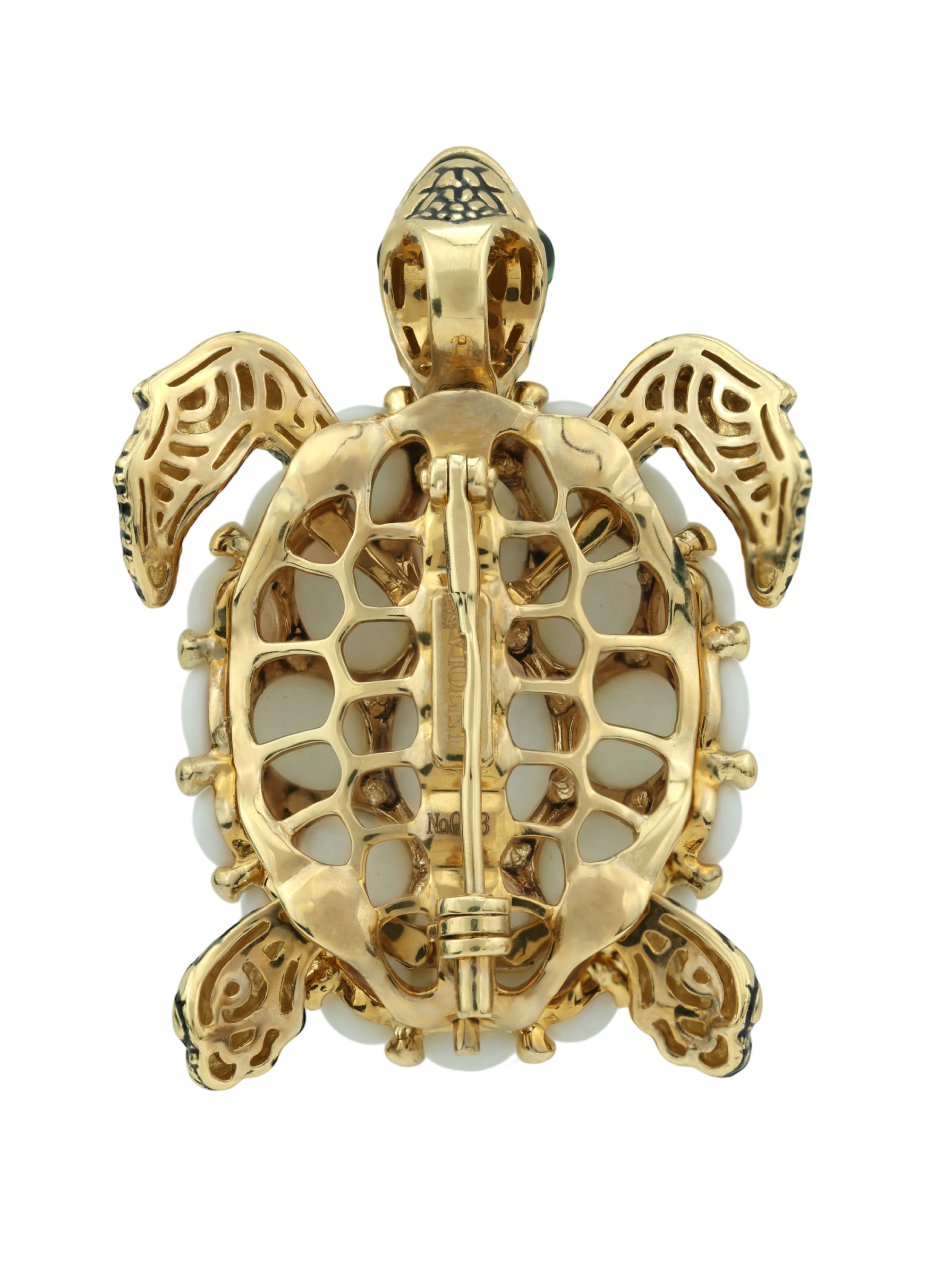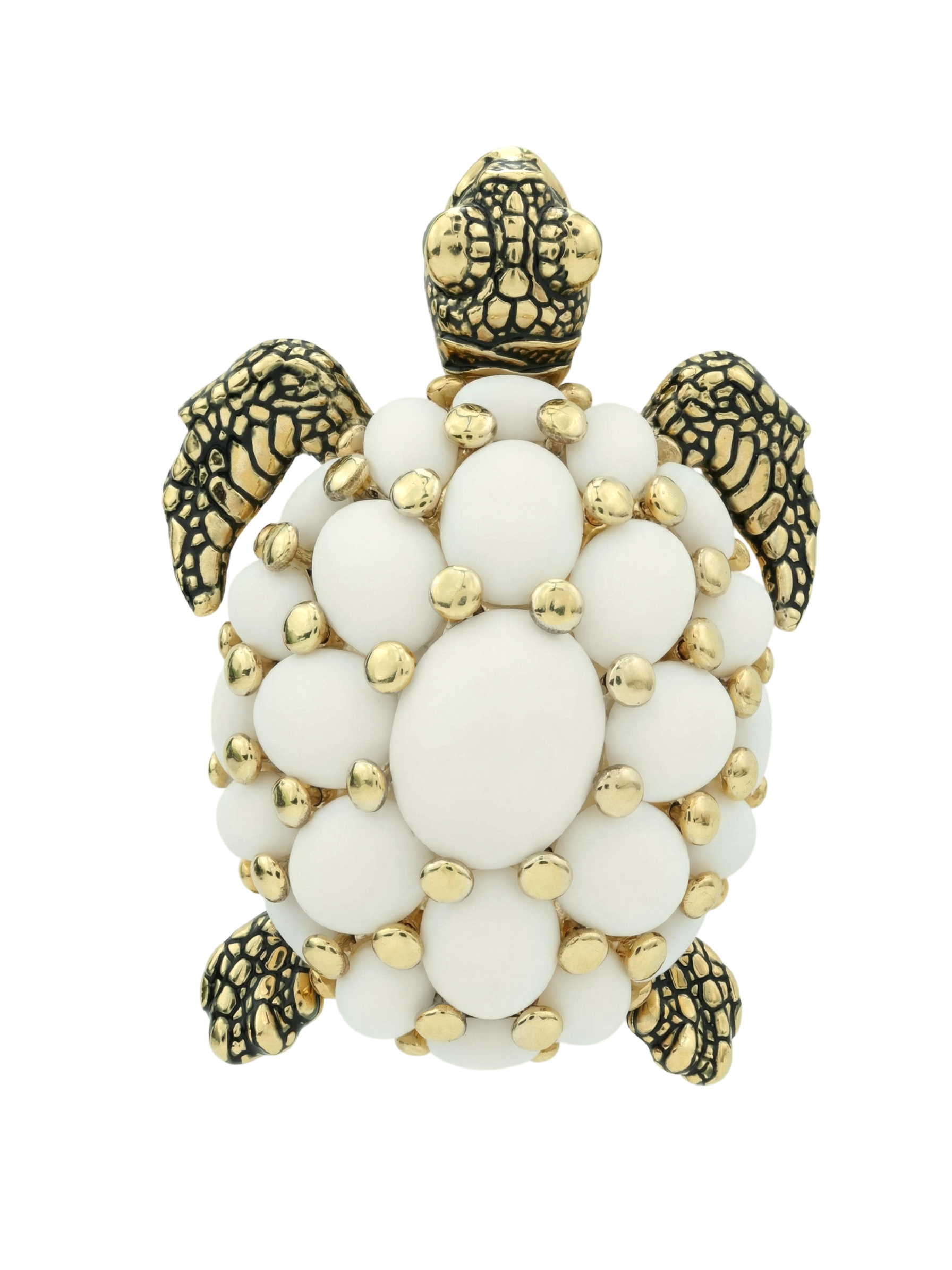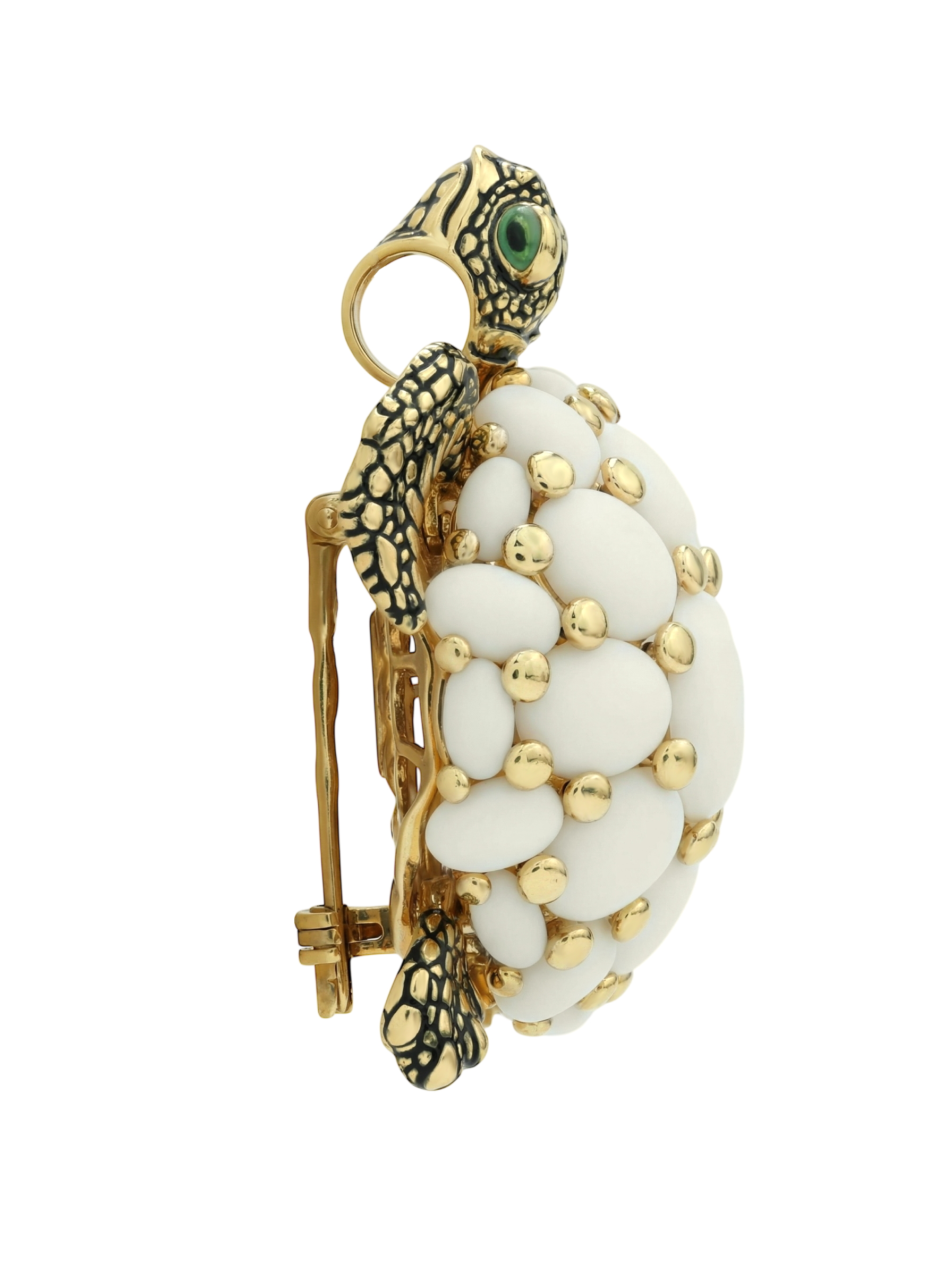 Брошь из лимонного золота c эмаль и бивнем мамонта