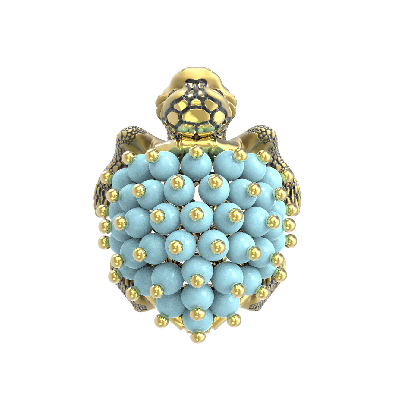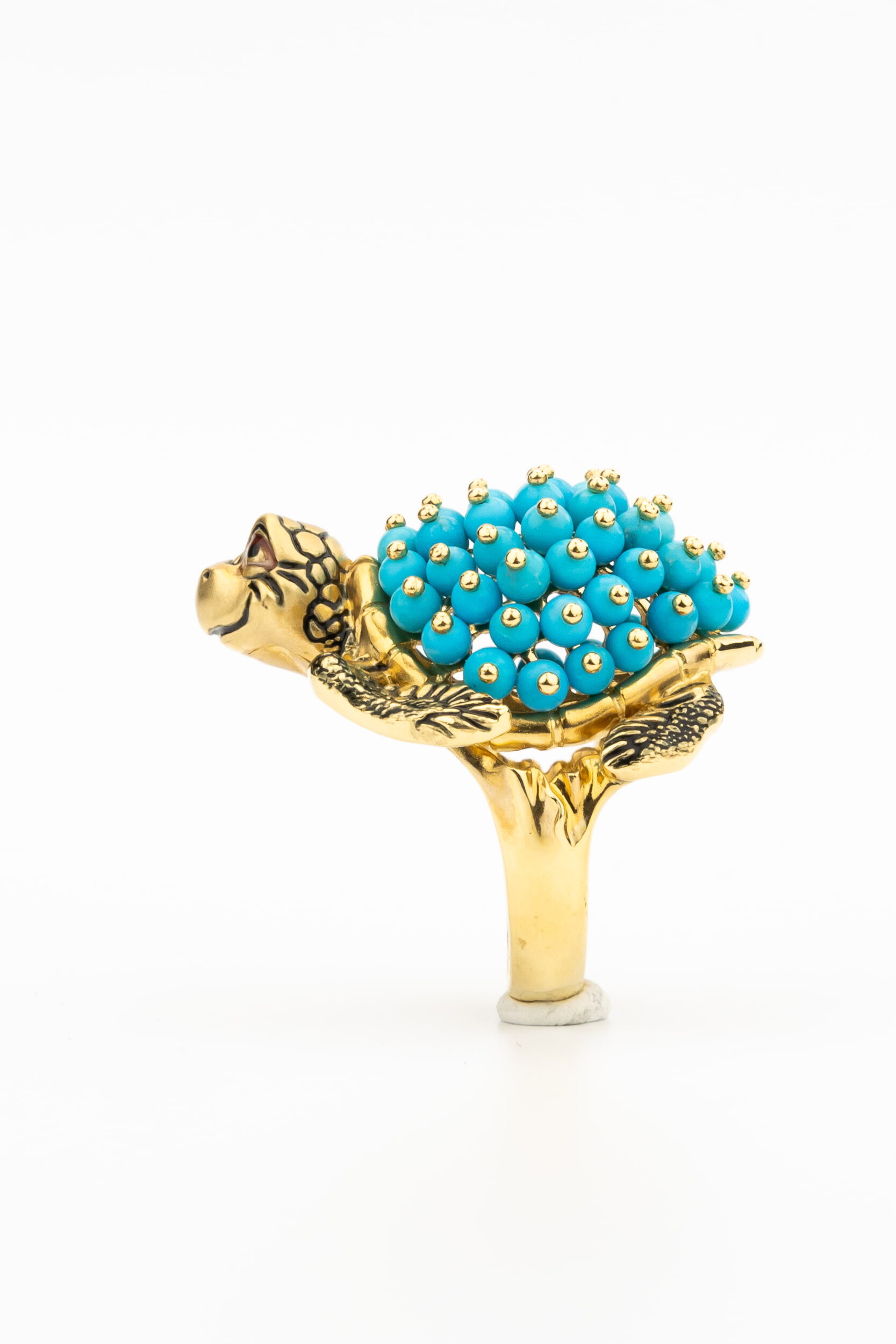 Кольцо из лимонного золота c эмаль и бирюзой