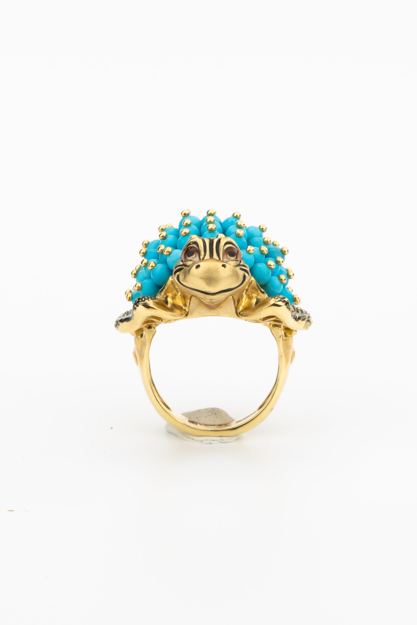 Кольцо из лимонного золота c эмаль и бирюзой