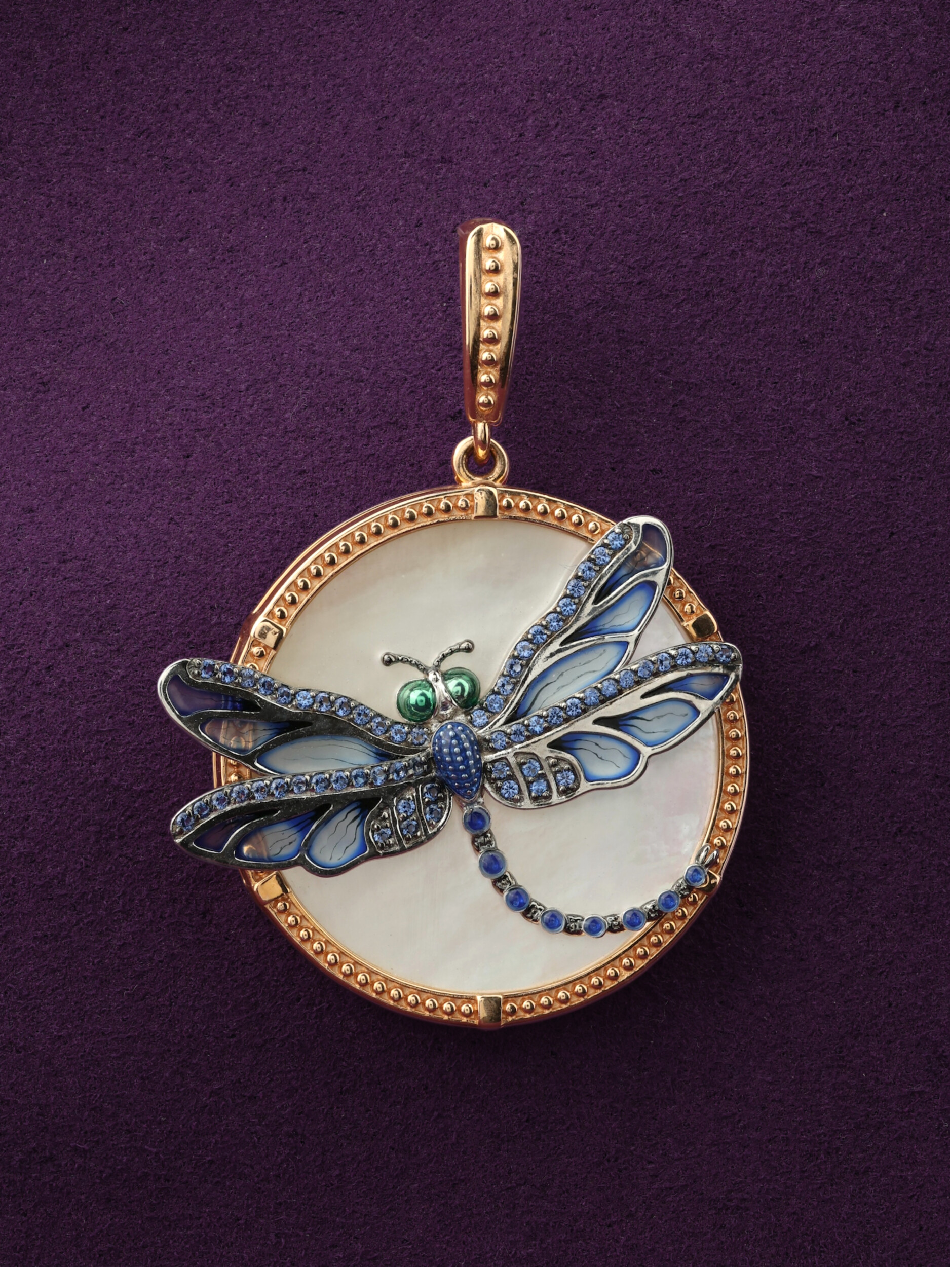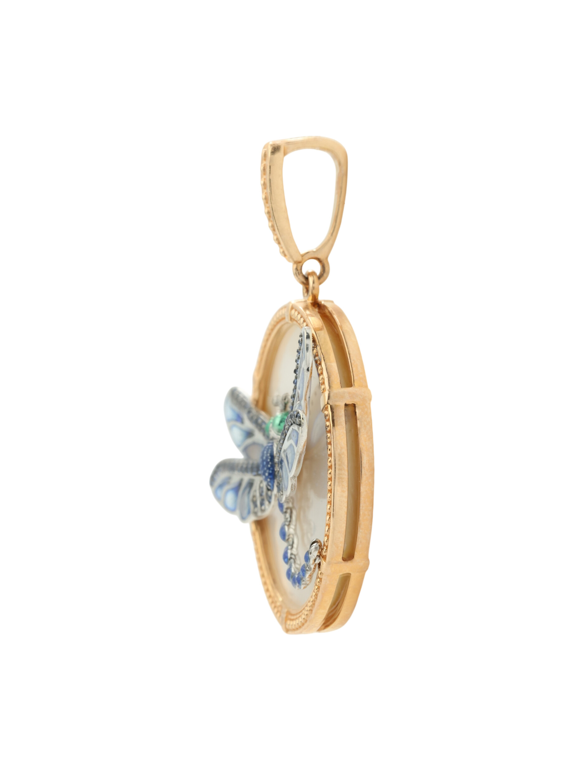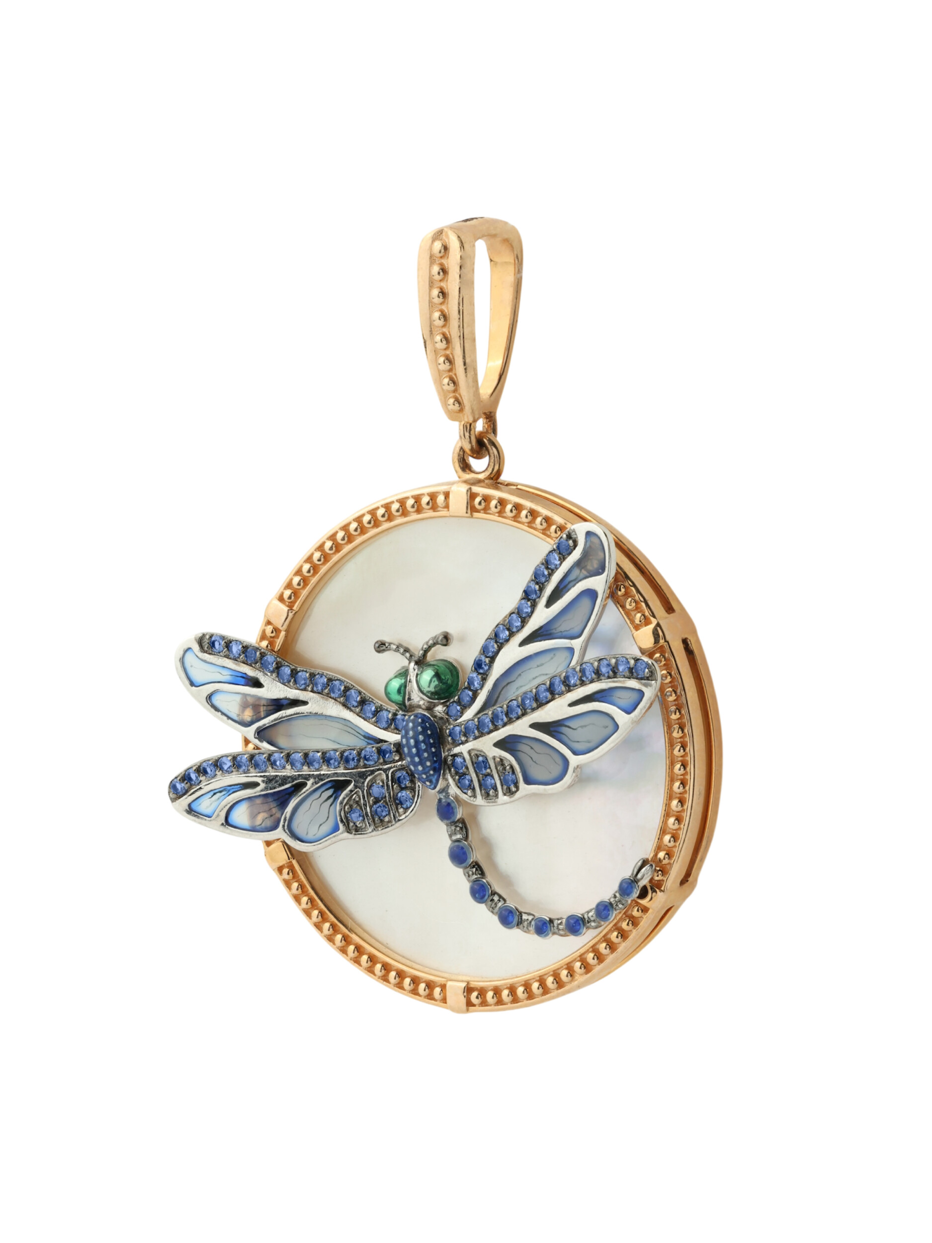 Подвеска из золота c сапфиром, эмалью и перламутром