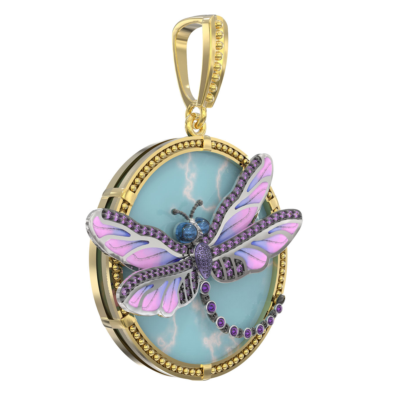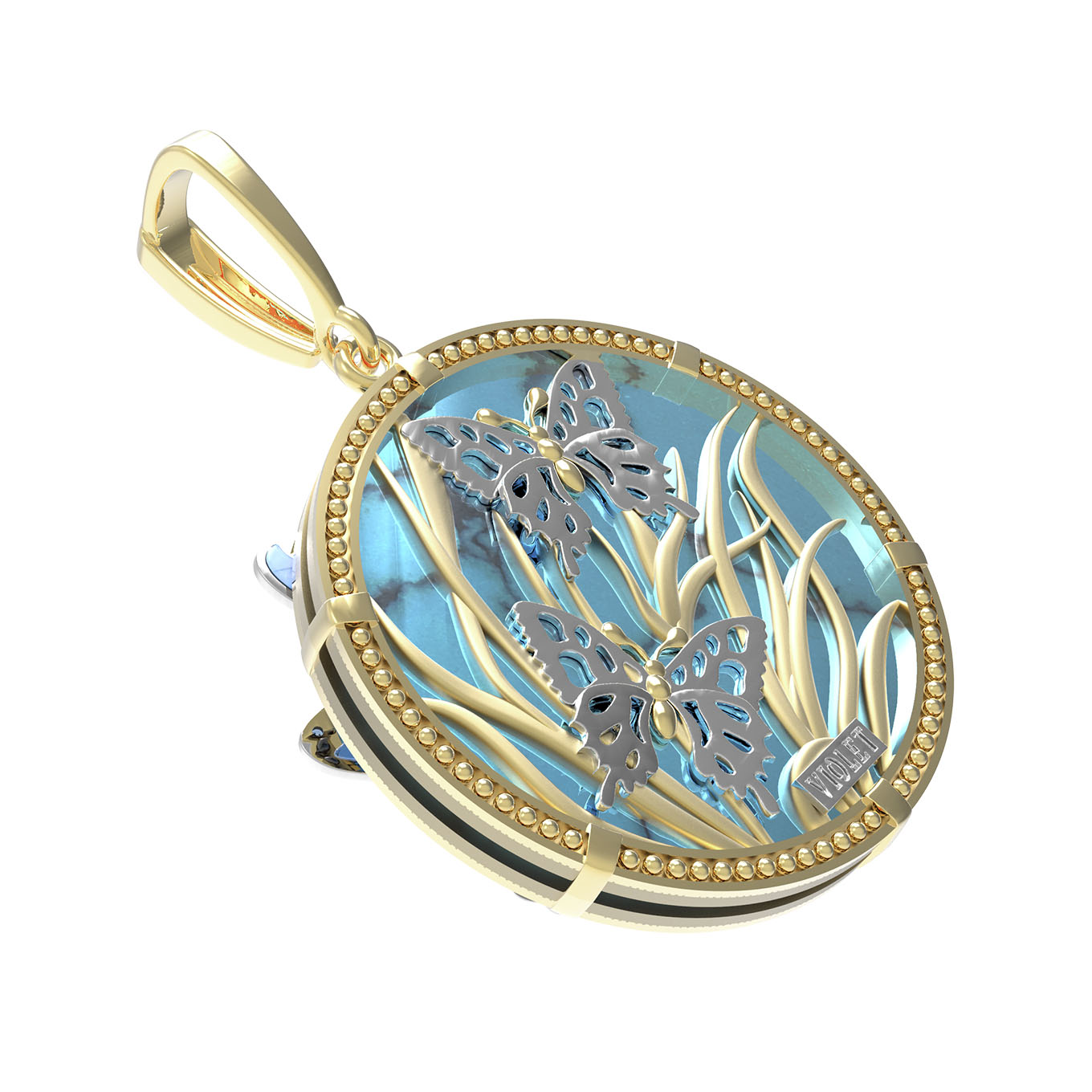Подвеска из лимонного золота c бирюзой, аметистом и эмалью