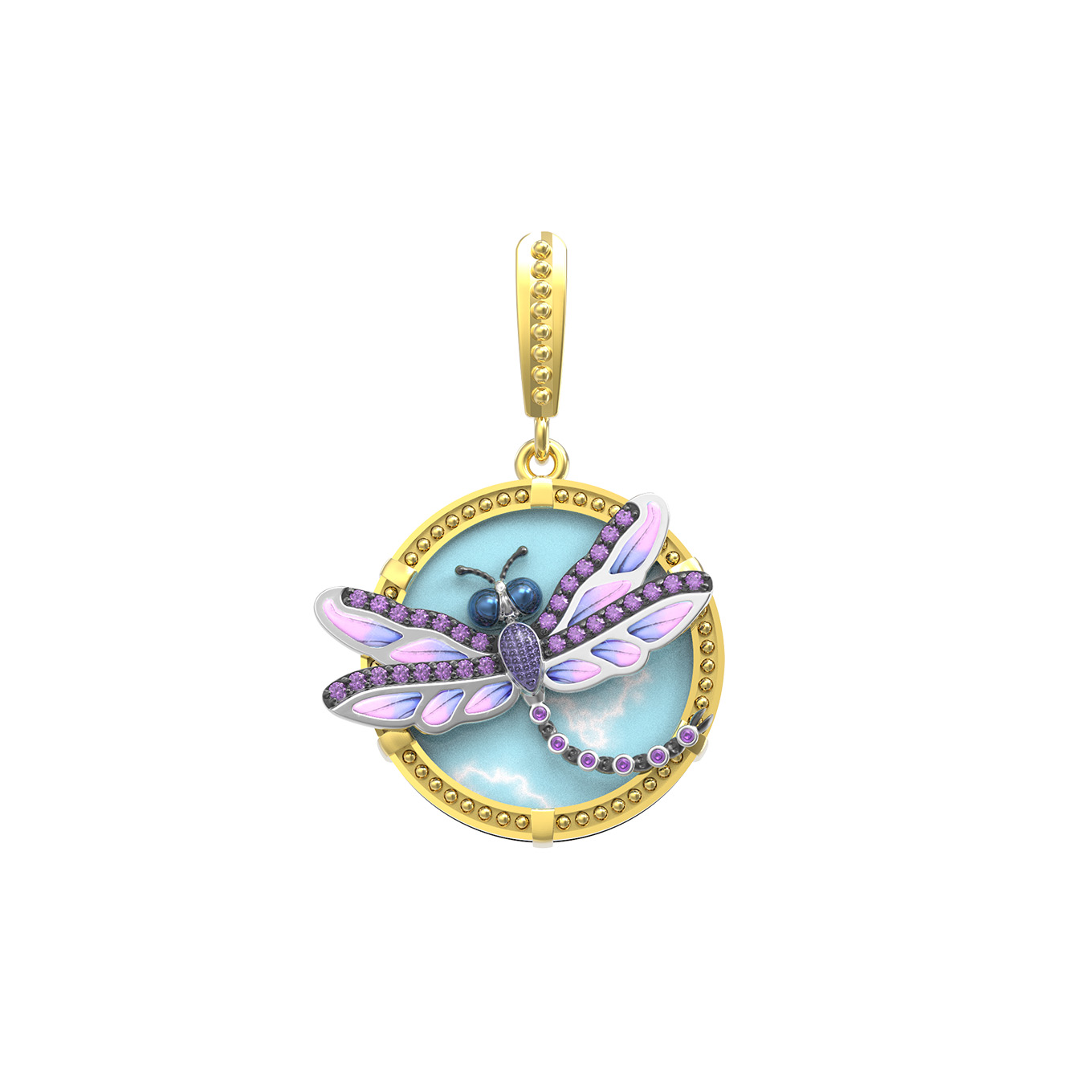 Подвеска из лимонного золота c бирюзой, аметистом и эмалью