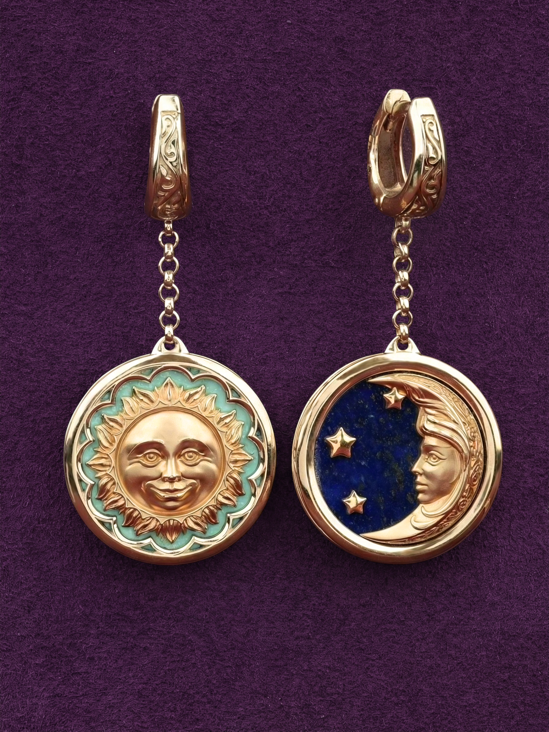 Серьги из золота c бирюзой и лазуритом