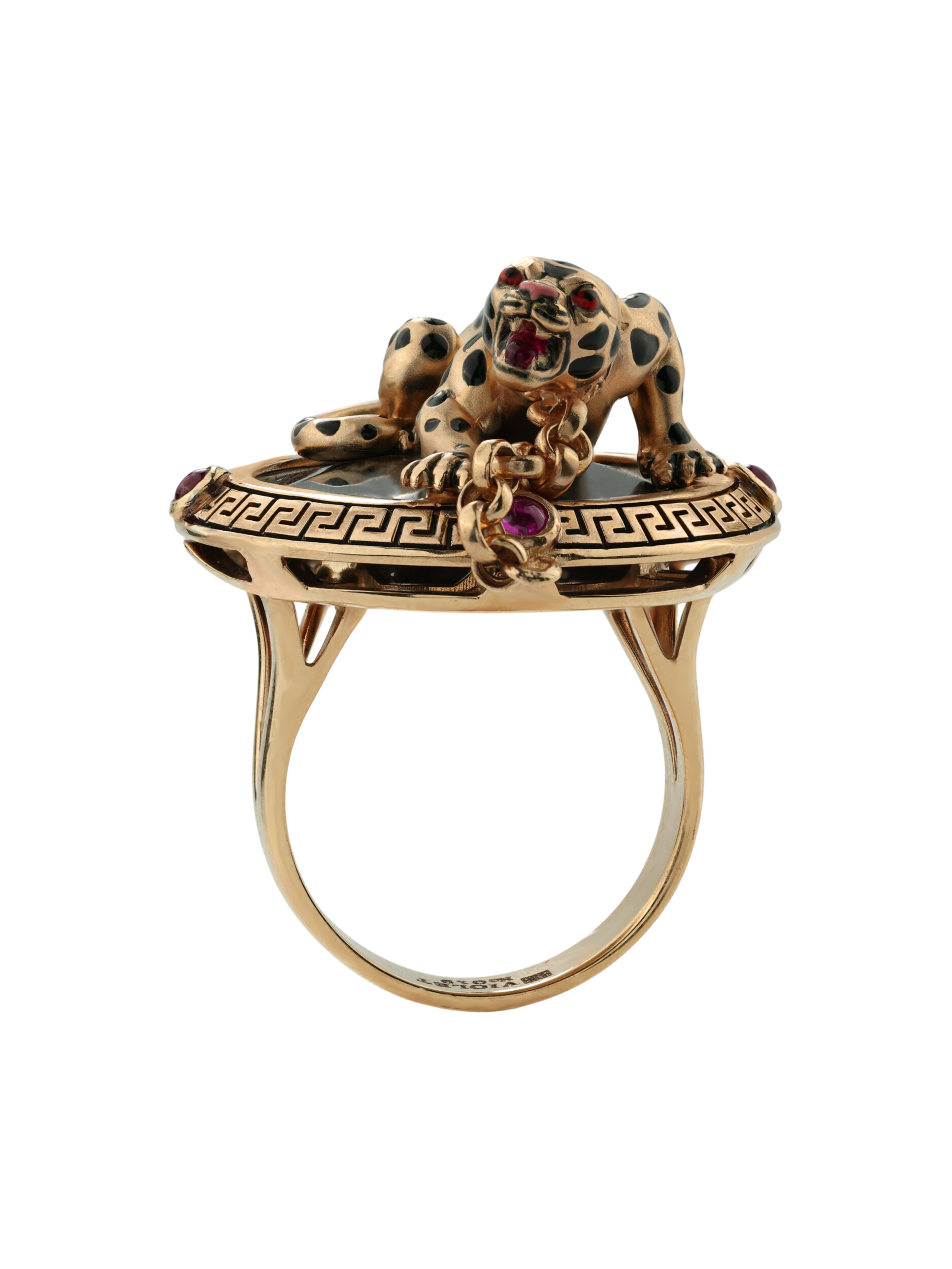 Кольцо из золота c эмаль, ониксом и рубином