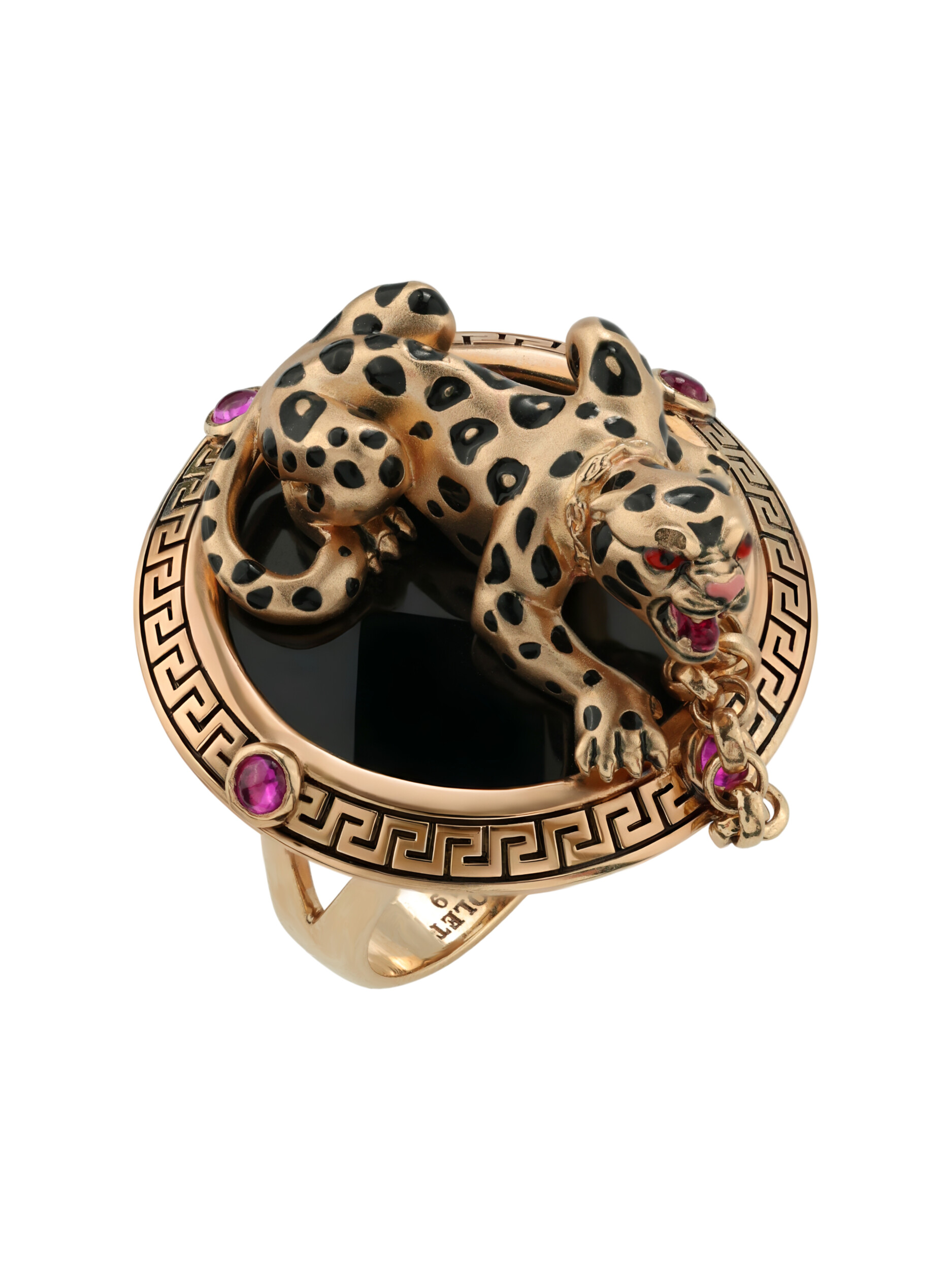 Кольцо из золота c эмаль , ониксом и рубином