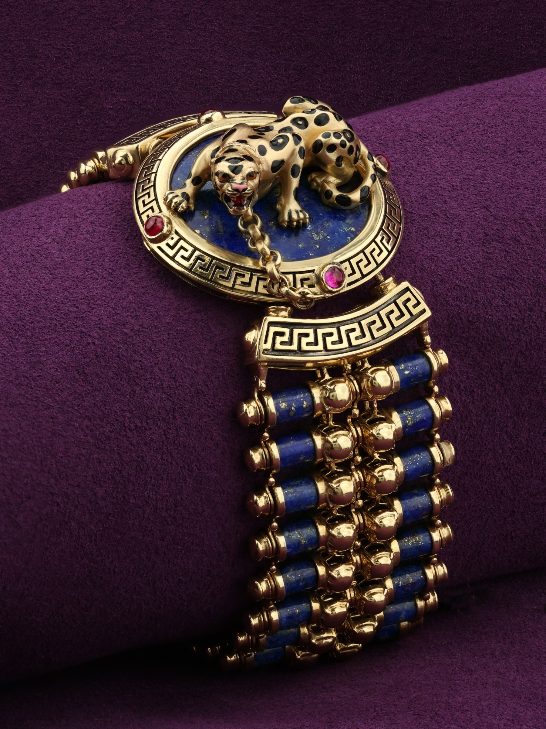 Браслет из лимонного золота c эмаль, рубином и лазуритом