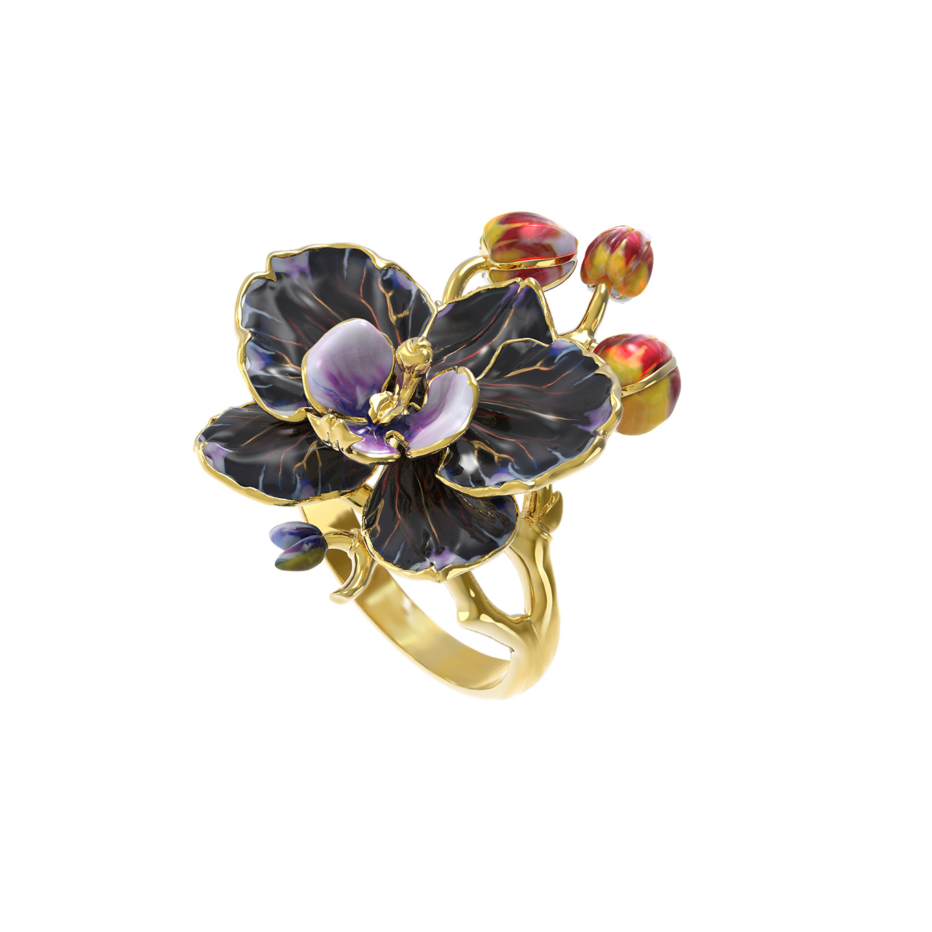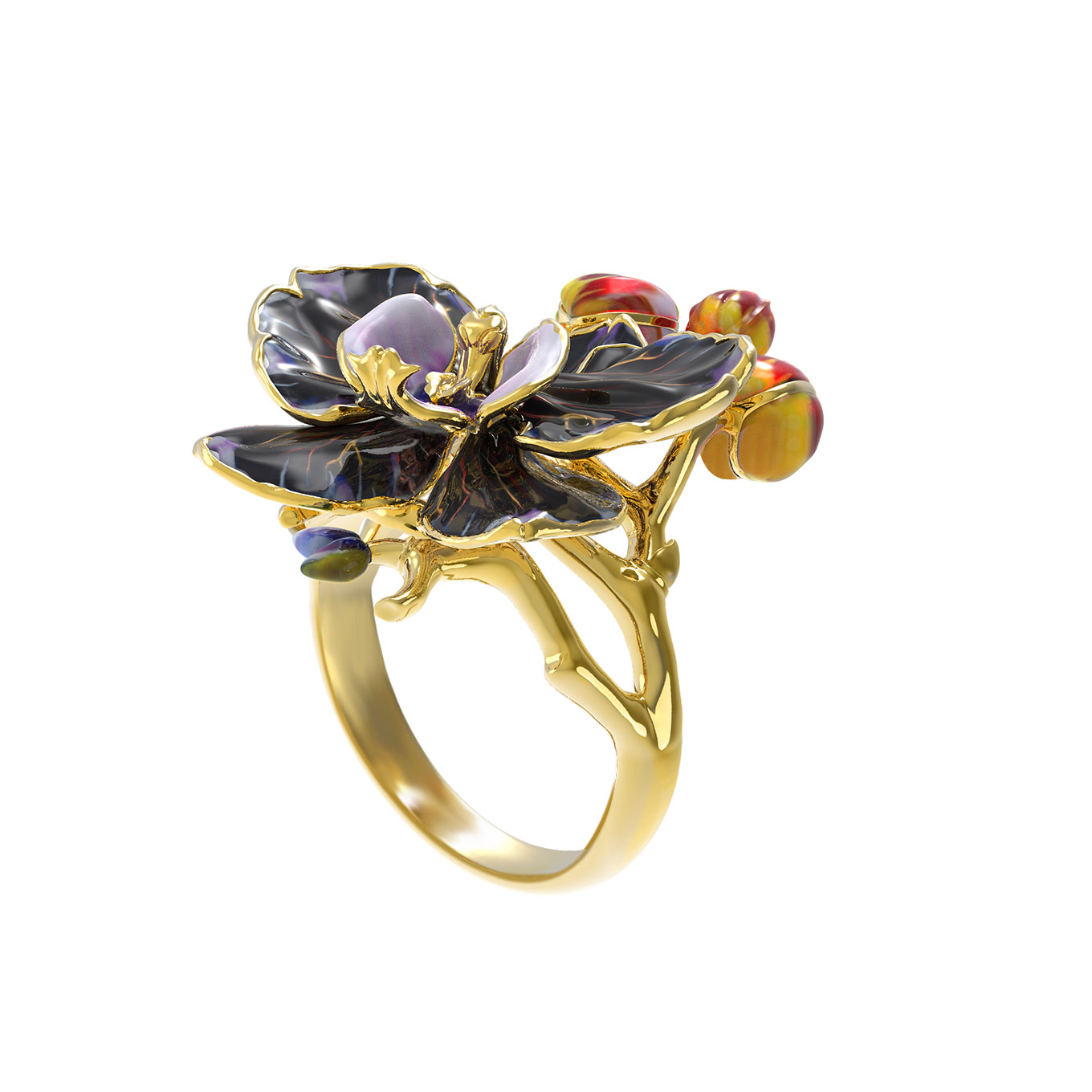 Кольцо из лимонного золота c эмаль