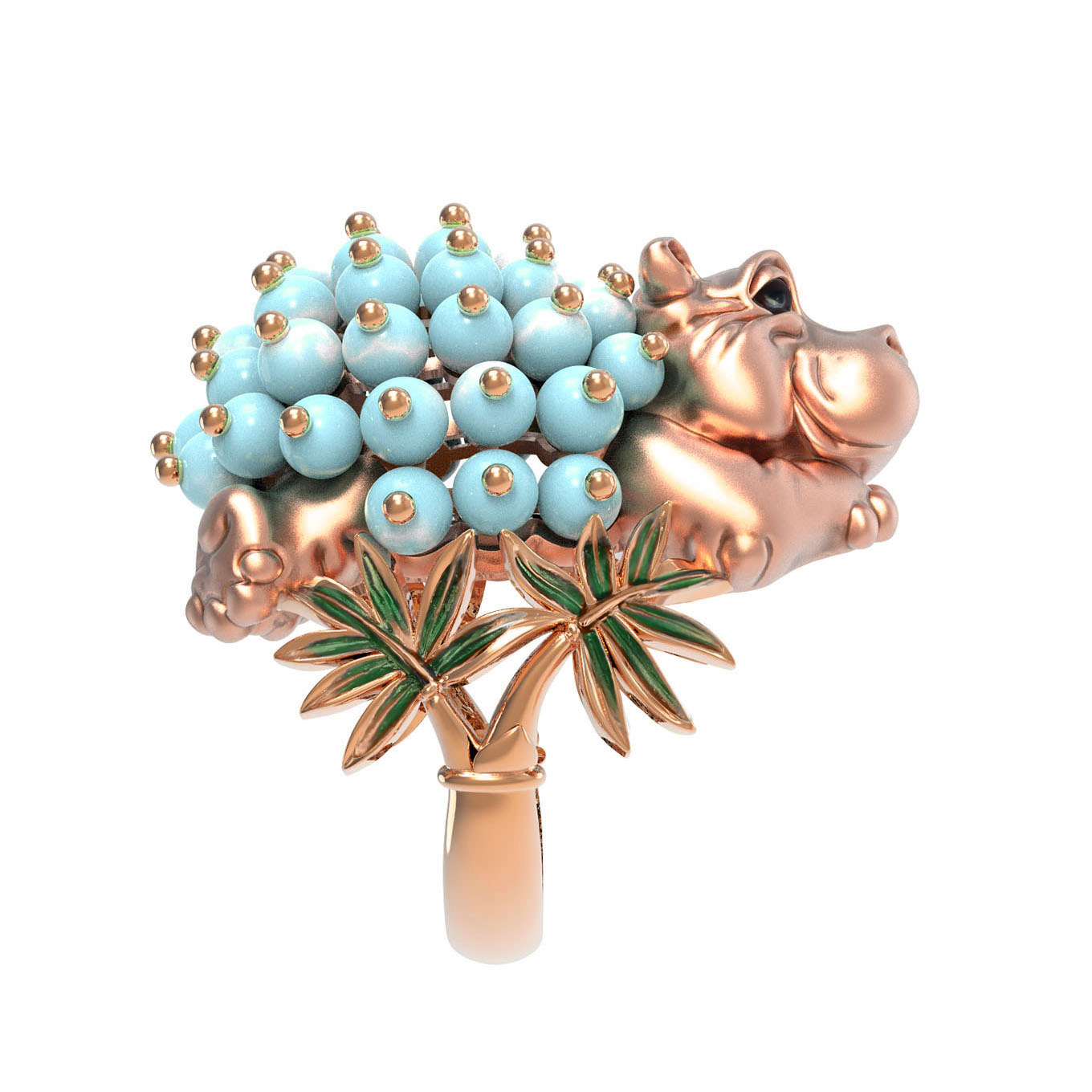 Кольцо из золота c эмаль и бирюзой