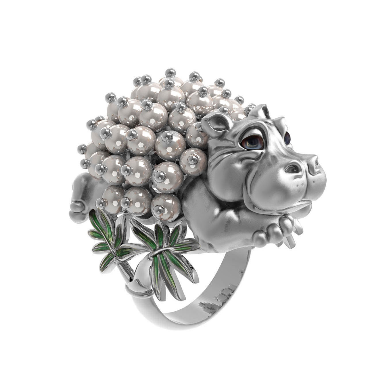 Кольцо из белого золота c эмаль и жемчугом