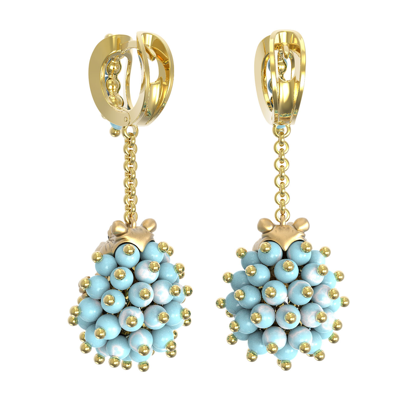 Серьги из лимонного золота c эмаль и бирюзой