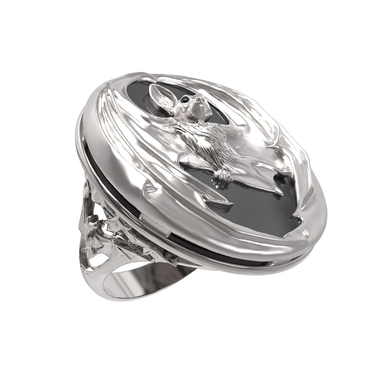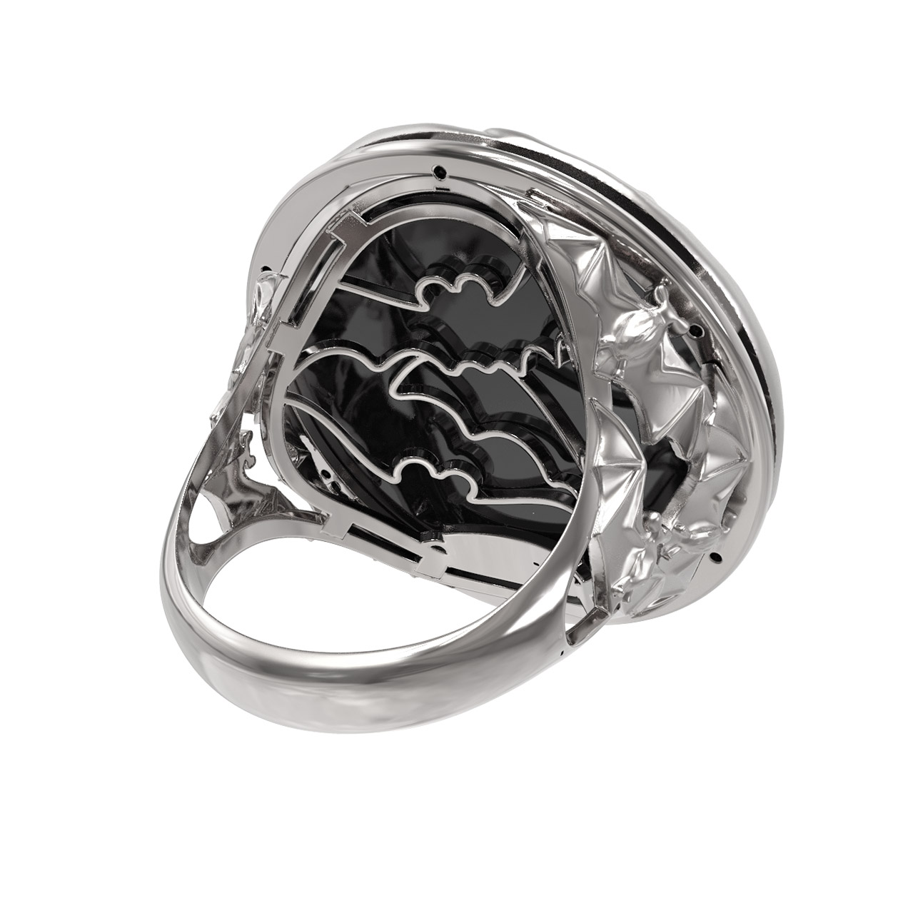 Кольцо из белого золота c эмаль и ониксом
